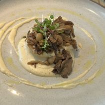 Polenta e funghi: Grilled corn polenta, sautéed wild mushrooms “trifolati”, Cacio e pepe sauce 220 THB