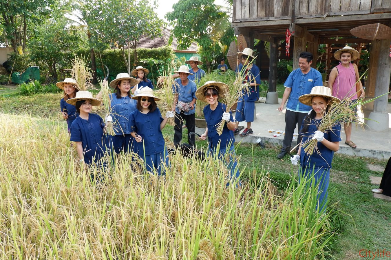 Siripanna invited local media to taste their new lunch buffet including pasta to order +1 premium cake 12 until 3 (come 4 pay 3) in the Nakwan cafe in old antique house. The local press were then invited to cut the rice in the Panna Rice Field.