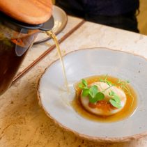 Guests can choose between a ‘Thai Menu’ seven courses for 1250 THB with additional 990 THB including 3 glasses wine pairing // ‘Degustation Menu’ six courses for 2300 THB with additional 1600 THB with 5 glass wine pairing or 990 THB with 3 glass wine pairing // ‘Experience Menu’ eight courses for 3000 THB with additional 1800 THB with 6 glass wine pairing or 990 THB glass wine pairing (*all prices are ++). Guests can also choose à la carte.