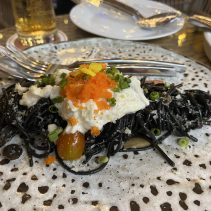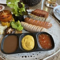 Examples from the menu include Black Ink Pasta Oloi Ebiko & Crab 380 THB, BBQ Pork Ribs 280 THB, Sausage Pork Mixed Grill 390 THB, Spicy Mixed Salad with shrimp and Cannabis leaf 220 THB, Spaghetti Pesto Tuna with Cannabis Leaf 280 THB ( all prices nett). Special deal on Carlsberg Beer