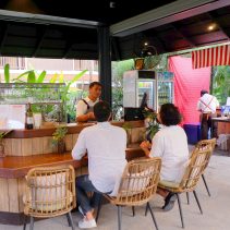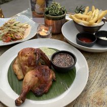 Every Sunday “Sunday in the Garden” special events- from 2pm until 10pm – for the month of February Speciality Cocktails – Siamese Tropical Cocktails (clarified Phraya rum, peach liqueur, aperol, passion fruit, lime juice, jasmine) , Aperol Special, Caipirinha: each 350 THB (plenty of other choices) Happy Hour 5pm until 7pm buy two get one complimentary.// Food available such as: Seafood Yom Yum Fried Rice 129 THB / Japanese Curry Bowl 189 THB / Grilled Squid 129 THB / Roasted Half Chicken 219 THB / Khao Soi 159 THB – a lot more besides (prices include VAT, service charge extra) kitchen closes 9.30pm