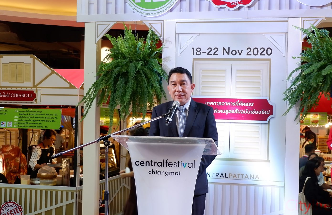 Opening of the Chiang Mai Savoury Food Fair at Central Festival. The Fair from 18 – 22 November 2020 on the ground floor of Central Festival is supported by the Chiang Mai Restaurant & Bistro Association. Top restaurants from around town are represented such as Le Crystal Restaurant, Accha Authentic Indian Cuisine, Girasole Italian Restaurant, Anchan Noodle, Santoku Japanese Curry, Mr Beef, Monday Sick Leave, Jai Tong Heng and many more.