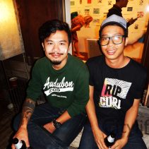 Opening of Mono Print Water Colour at Meeting Room Art Cafe Charoenrat Road. This is a group exhibition by 4 INSIDE; Narit Tananon / Nat Dharmasaroja / – Sirinapa Thongsuk / Praween Piangchompu