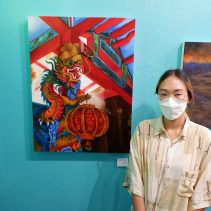 Opening of Phenomena at Riverside Art Gallery, Riverside Bakery, Charoenrat Road. The exhibition features students from the Fine Arts Faculty, Chiang Mai University and is mainly oil paintings, landscapes and still life,plus some mixed media. The exhibition is on display from 9 April until 6 June 2022, open daily from 10am until 6pm.