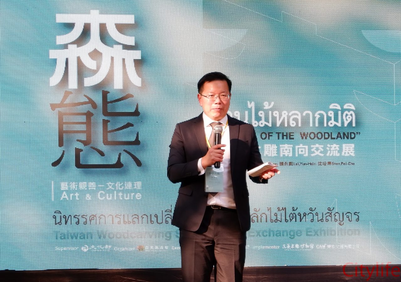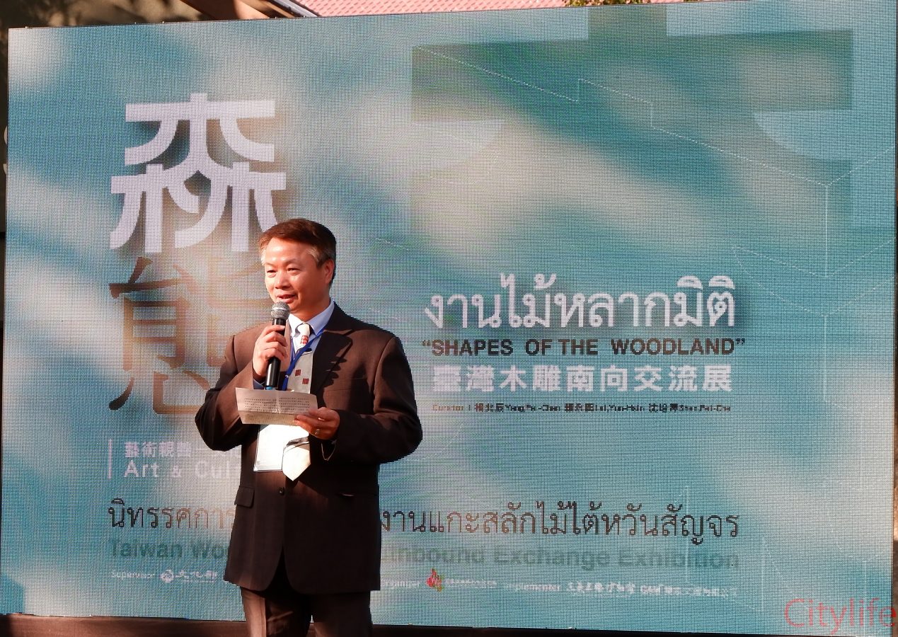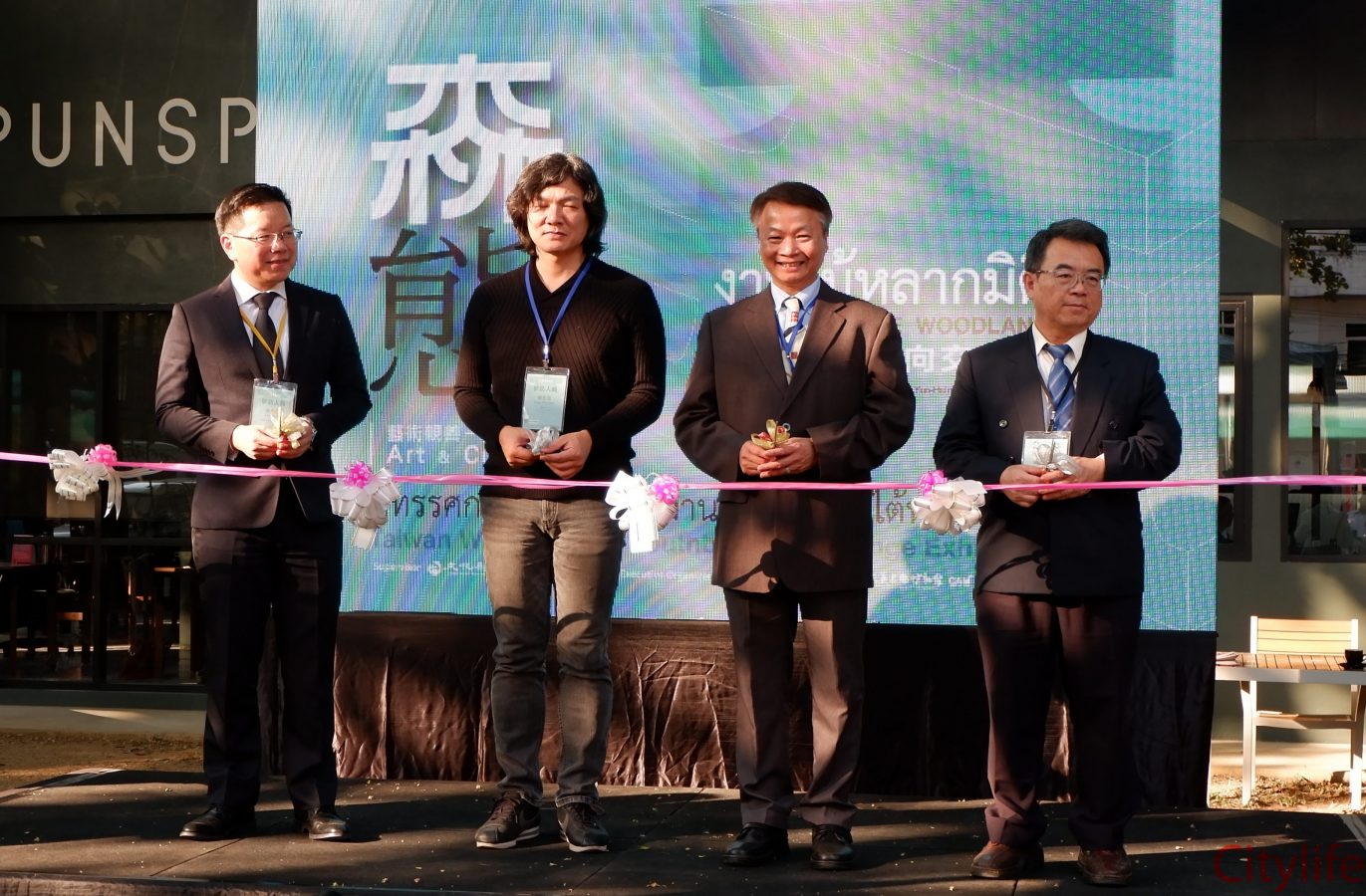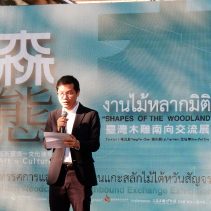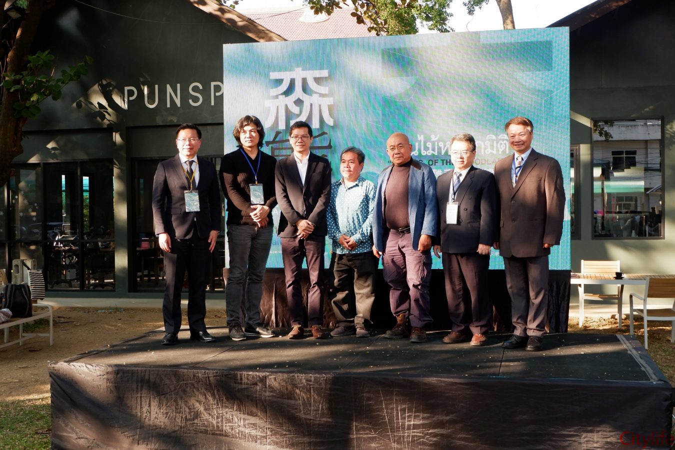 Opening of Shapes of the Woodland, Sanyo Wood Sculpture at Punspace Wiang Kaew. Taiwan Wood carving Southbound Exchange Exhibition, part of Chiang Mai Design Week 2019