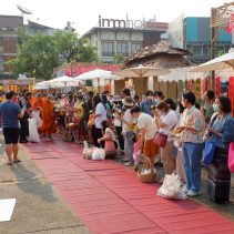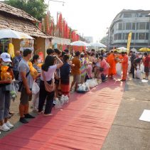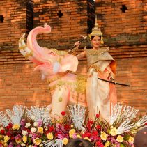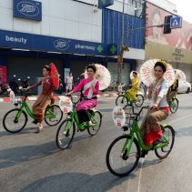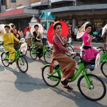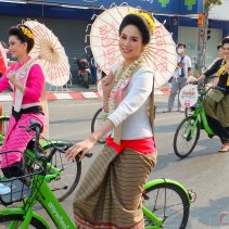 Opening of Songkran Festival 2022 at Thapae Gate with Governor of Chiang Mai, Prajon Prachsakul and the Mayor of Chiang Mai, Assanee Buranupakorn. The ceremony was preceded by alms giving to the monks and followed by the parade of ladies riding bicycles carrying umbrellas.