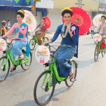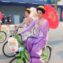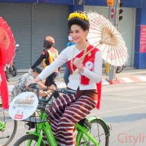 Opening of Songkran Festival 2022 at Thapae Gate with Governor of Chiang Mai, Prajon Prachsakul and the Mayor of Chiang Mai, Assanee Buranupakorn. The ceremony was preceded by alms giving to the monks and followed by the parade of ladies riding bicycles carrying umbrellas.