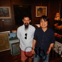 Opening of Spiritual Inheritance, solo exhibition by Chaknarin Inwongwarn, at Meeting Room Art Café Charoenrat Road. The exhibition is on display until 31 March 2017
