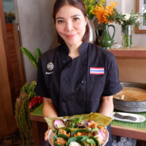 Chef Nong Panithi Jantayasakorn A devoted student of Pata, Chef Nong is a former Bangkok socialite who turned to country living during the COVID lockdown. She built Baan Buabahn, a colonial white farmhouse in the middle of rice fields in Chiang Mai, where she grew vegetables, raised animals, made ceramics, and experimented with self-sufficient living. Her journey led to a renewed passion for Thai cuisine — especially vegetarian — and eventually to the founding of Sukjai together with Pata.