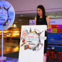 The director of Tourism Authority of Thailand Chiang Mai Office Wisut Buachum opened the Time to Travel Fair on the ground floor at Central Airport Plaza. The fair, on until 30 August 2015 is to promote local tourism in Chiang Mai and throughout Thailand. Airlines, hotels, tour operators etc are offering great discounts.