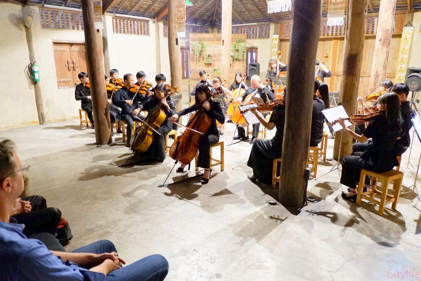 Organic Strings at Jing Jai Farmers Market with Silpakorn University String Orchestra, directed by Tasana Nagavajara, featuring Jirajet Jetsadachet (violin) Puree Cee Muadmuang (Harmonica) and Wichuporn Jingjit (jazz Violin).