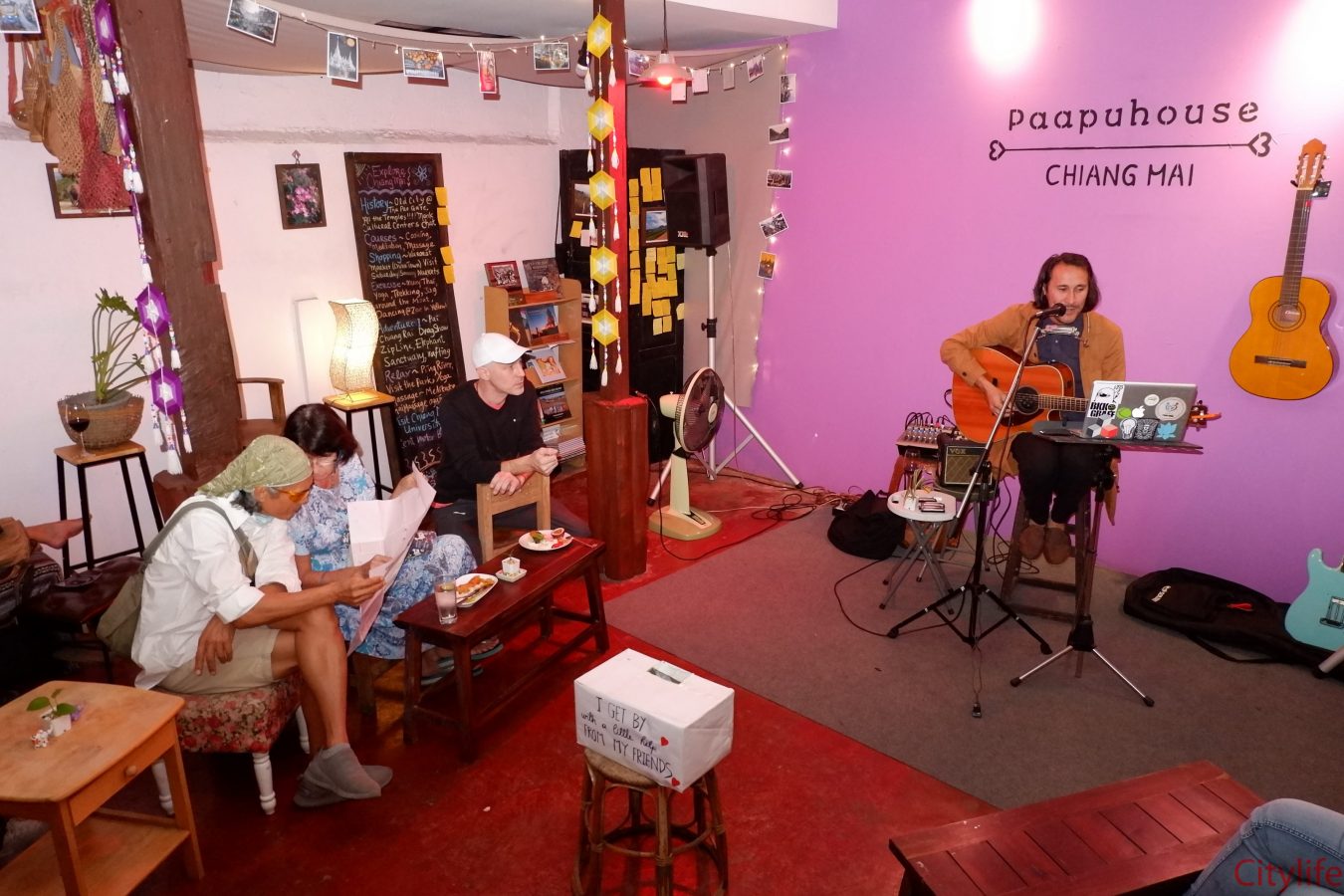 Paapu Live Session #11: I have a reason to sing: at Paapu House. Performed Live by the best Singer – Songwriter:Sweet Tater and the Fixins (…Jostin’s voice is sure to capture and keep your attention). Paapu House located on Chayiapoom Road(North of the eastern moat)
