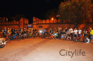 Cyclists met at Thapae Gate to form Critical Mass Chiang Mai then rode