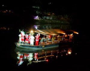 Christmas Eve at Anantara Resort Chiang Mai, with Santa arriving on a boat