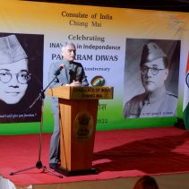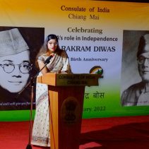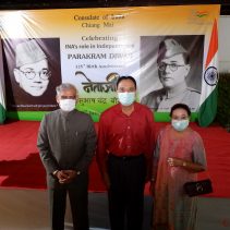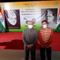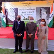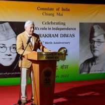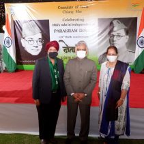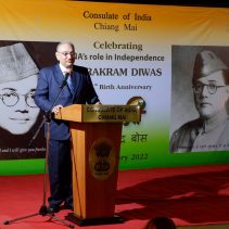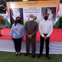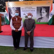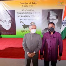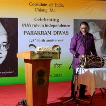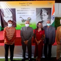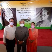 Consulate of India in Chiang Mai held a function on January 23rd evening, rigorously following all the COVID-19 norms, to celebrate the 125th Birth Anniversary of the Supreme Commander of Azad Hind Fauz (Indian National Army), Scholar and Statesman Netaji Subhash Chandra Bose who had made Thailand one of his base drawing support from the Indian Community as well as the then Thai Government to carry an armed struggle for India’s Independence during the period 1942-45. The speakers included Mr Ravi Bhatia, the great grandson of Lal Singh Pandhi, who had worked as the speechwriter for Bose and was Vice President of the Thailand ‘territory’ of Indian Independence League, INA’s umbrella body before Bose was made it’s Commander-in-Chief; Dr Sharin Bhatia who has in his possession an INA ring which was given to those helping the INA; and the Consul Krishna Chaitanya. Ashok Rajpal rendered a couple of INA song. Catering was provided by Chai N Thai @ Nimmon. The event was part of the three day celebration of 73rd Republic Day of India.