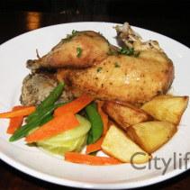 Every Wednesday Night, there is a ‘Special’ on the menu at Pern’s Restaurant and Tapas bar Huay Kaew Road – this week it was half a roast chicken with oniony potatoes and fresh vegetables with stuffing and gravy for 299THB