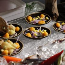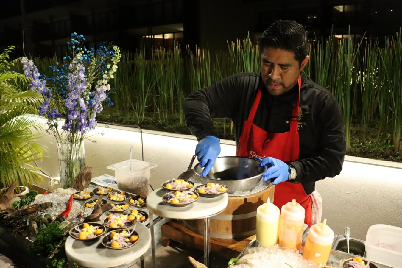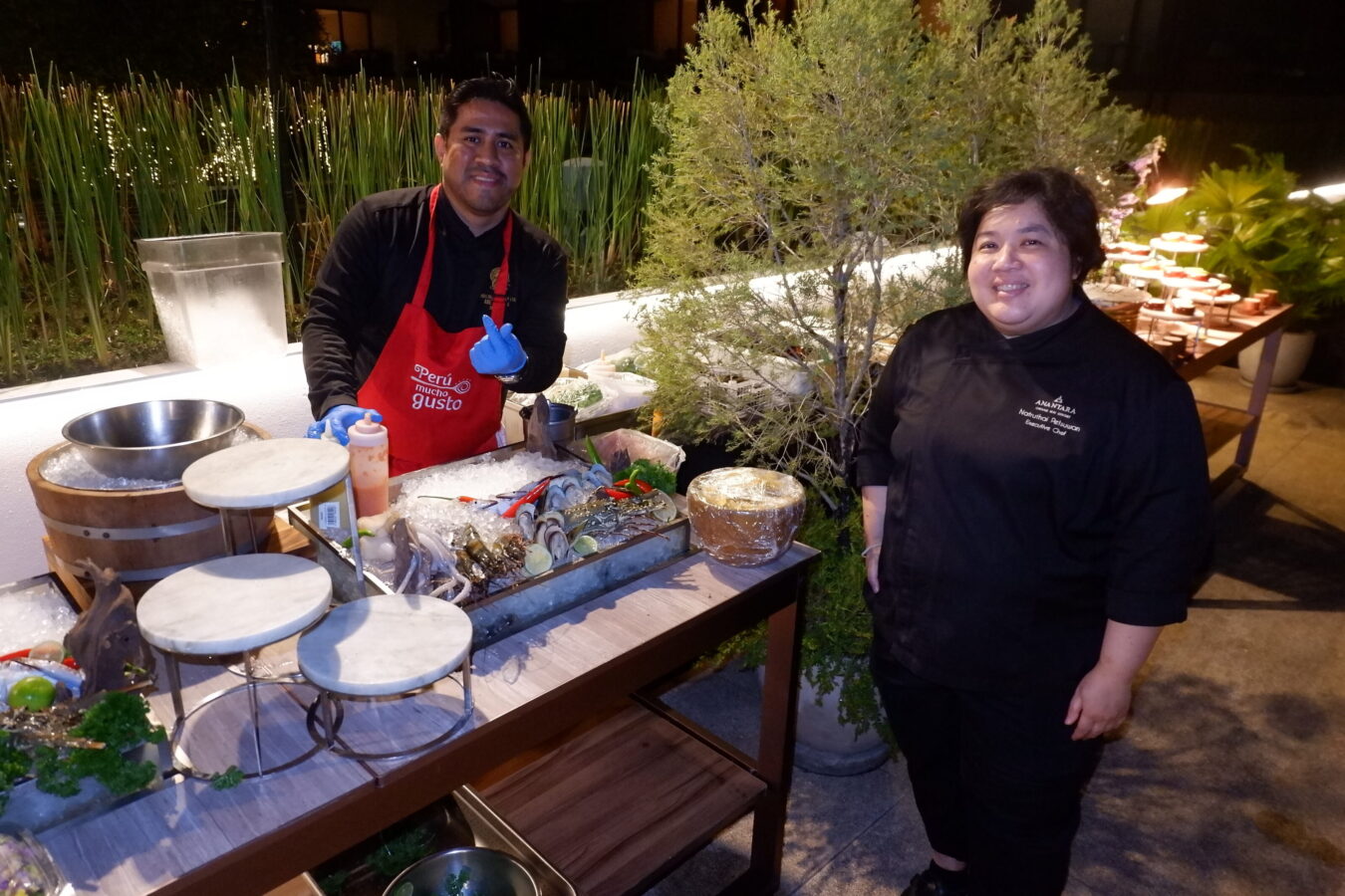 Guests were able to celebrate under the stars with a vibrant evening of Peruvian–Lanna canapés prepared by Chef Abel Ortiz Alvarez from Peru and Chef Natruthai Petsuwan, Executive Chef of Anantara Chiang Mai. There were also live cooking stations, and a lively Pisco Sour bar. Enjoy the festive atmosphere with music, lights, and friendship by the Ping River. Bubbles Rooftop Bar.