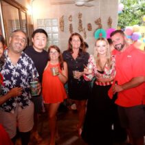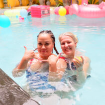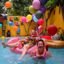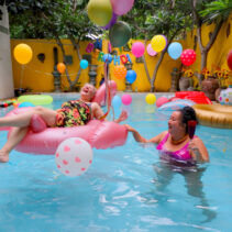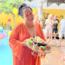 Pim celebrated her 50th birthday with a Tropical Copacabana pool party.