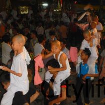 First night of Poy Sang Long festivities at Wat Gu Tao. Poy Sang Long is a multi-day celebration of ethnic Shan boys being ordained as novices into the monk hood. This involves the boys being paraded around on the shoulders of their elders, first night wearing white robes then next couple of nights being adorned in colorful costumes and headdresses often called ‘little princes’. Wat Gu Tao is located behind the Municipal Stadium – The main gate to Wat Gu Tao is located at the very east end of Soi 6, Chang Phuak (Soi 6 is the second Soi north of the Chang Phuak bus station).
