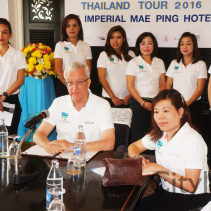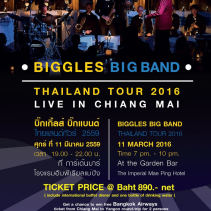 A Press conference has held to announce the Biggles Big Band will play at the Garden Bar, Imperial Mae Ping Hotel on Friday 11 March 2016 as part of their Thailand Tour 2016. The Biggles Big Band from Amsterdam, The Netherlands includes 25 jazz musicians conducted by Adrie Bratt and features renowned jazz singer Andre Rabini plus a string quartet integrated in the orchestra. Along with Chiang Mai, the tour is also performing in Bangkok, Chiang Rai, Phrera, Tak, Loei, Udon and Hua Hin. They recreate the sounds of Glenn Millet, Tommy Dorsey, Count Basie, Duke Ellington and jazz singers like Frank Sinatra and Dean Martin. They will also play jazz compositions from H.M. King Bhumibol Adulyadej. Tickets are 890THB net per person and includes an international buffet dinner and bottled water. For tickets or further information 053-283-900 or buy your ticket the Imperial Mae Ping Hotel reception