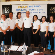 A Press conference has held to announce the Biggles Big Band will play at the Garden Bar, Imperial Mae Ping Hotel on Friday 11 March 2016 as part of their Thailand Tour 2016. The Biggles Big Band from Amsterdam, The Netherlands includes 25 jazz musicians conducted by Adrie Bratt and features renowned jazz singer Andre Rabini plus a string quartet integrated in the orchestra. Along with Chiang Mai, the tour is also performing in Bangkok, Chiang Rai, Phrera, Tak, Loei, Udon and Hua Hin. They recreate the sounds of Glenn Millet, Tommy Dorsey, Count Basie, Duke Ellington and jazz singers like Frank Sinatra and Dean Martin. They will also play jazz compositions from H.M. King Bhumibol Adulyadej. Tickets are 890THB net per person and includes an international buffet dinner and bottled water. For tickets or further information 053-283-900 or buy your ticket the Imperial Mae Ping Hotel reception
