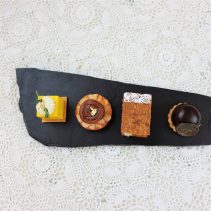 Petit Fours: Lemon Cube, Miso Caramel Blondie, Mango Millefeuille & Chocolate Dome / L’ecru, Sicilia Passito, Firriato , Firriato, 2014.