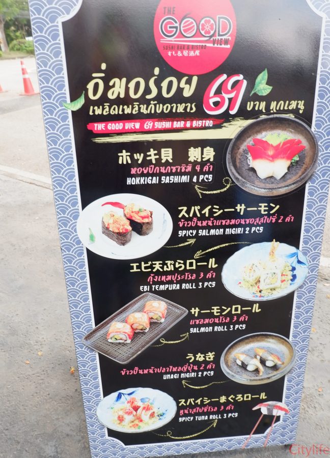 Local media were invited to the re-opening of the Good View 69 Sushi Bar & Bistro at Good View Village. Open from 5pm until 10pm, indoor and outside seating for approx 100 people (plus plenty of parking). For reservations call 053-904-406/7/8 or 090-3208938. Plenty of starters for 69 THB: Tuna Sashimi (2 pcs) / Sake Sashimi (3 pcs)/ Shime Saba Nigiri (3 pcs) / Tuna Nigiri (2 pcs) / Spicy Tuna Nigiri ( 2 pcs) / Kimchi / Ebi Tempura / Deep fried Kani Kambaboko / Oysters with Ponzu Sauce ( 2 pcs) / Chaka Wakame / Gyoza (4pcs) / Deep fried Shrimps / Japanese Pork Hamburger / Caesar Salad / Saki Shio Yaki / Salmon Roll (3 pcs) – and a lot more besides – 69 THB each //// alternatively there is: Salmon Yaki Japanese Style Set 349 THB / Pork neck slice 120 THB / USA Beef Short Plate 150 THB / Buta Yaki Japanese Style Set 290 THB / Seafood Japanese Salad 290 THB / Salmon Foie Gras Roll (8 pcs) 590 THB and much more besides….