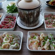 Mhoo Joom ; A Hot Pot with clear soup with selection of Pork, Beef and Seafood