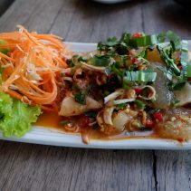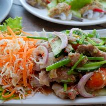 Yum Kor Mhoo Yang ; Spicy grilled Pork Neck salad