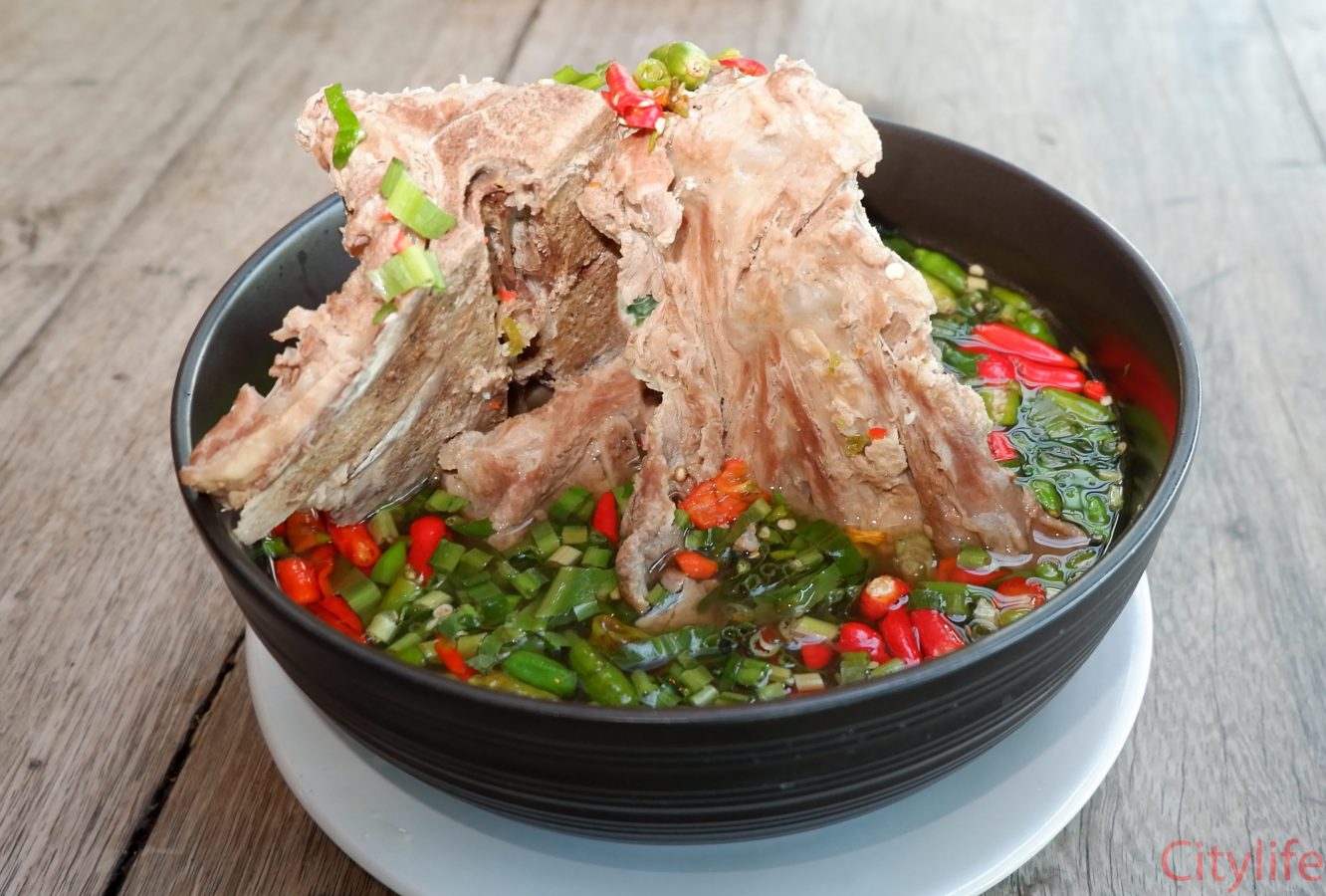 Yum Kor Mhoo Yang ; Spicy grilled Pork Neck salad