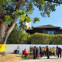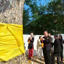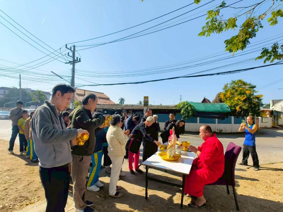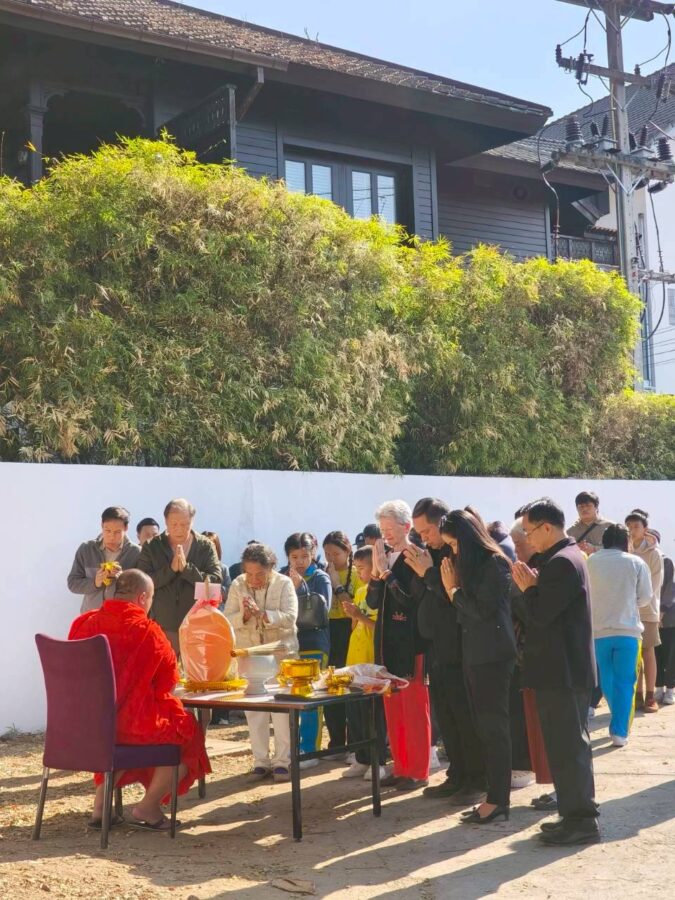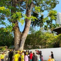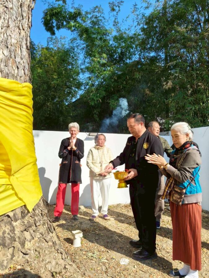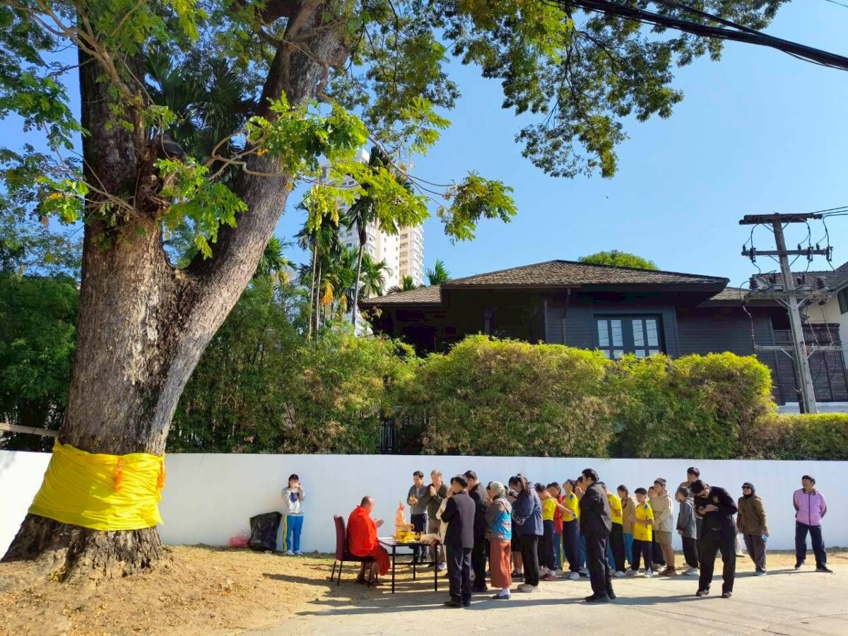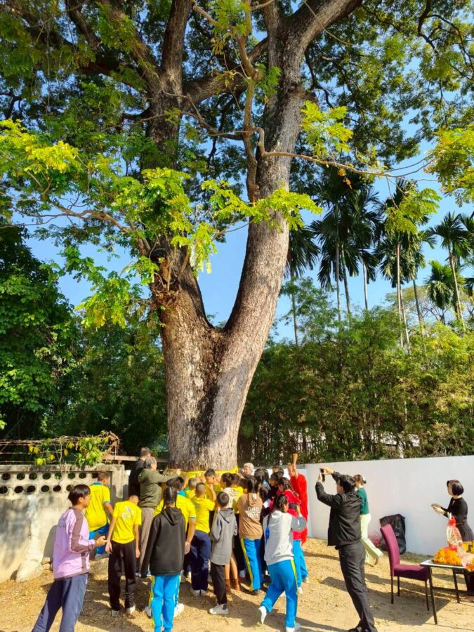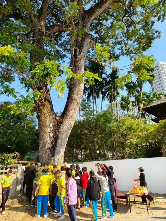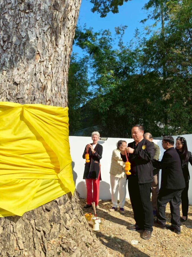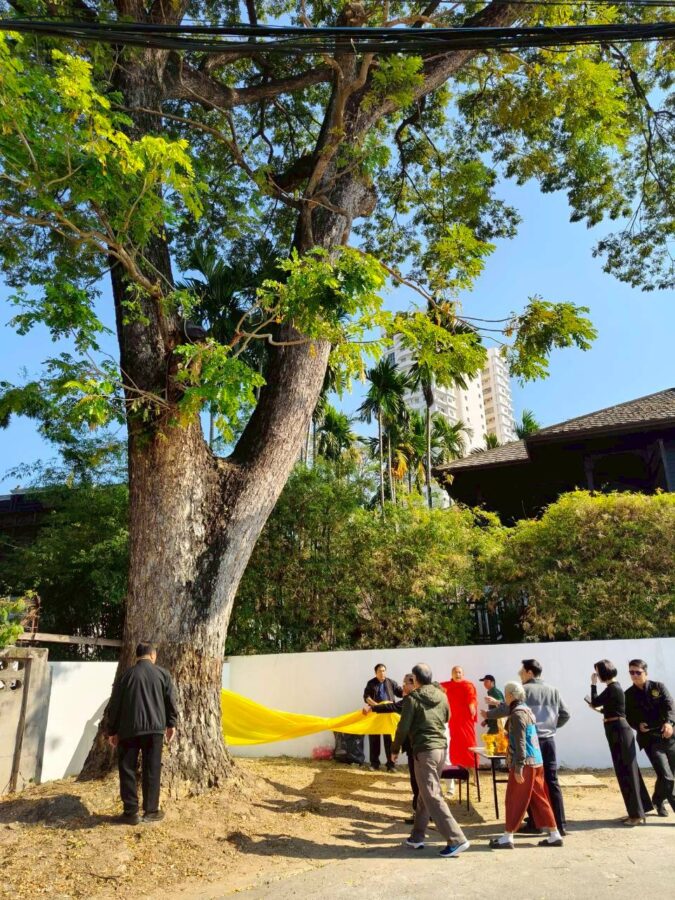 A special ceremony to refresh the ordination cloth on the heritage rain tree was held today, with the participation of Chiang Mai Municipality, Wat Gate Community, the principal together with students from Wat Gate School. The ceremony was initiated by 137 Pillars House Chiang Mai.