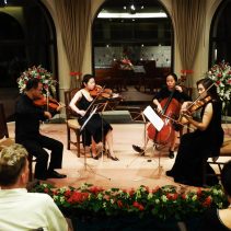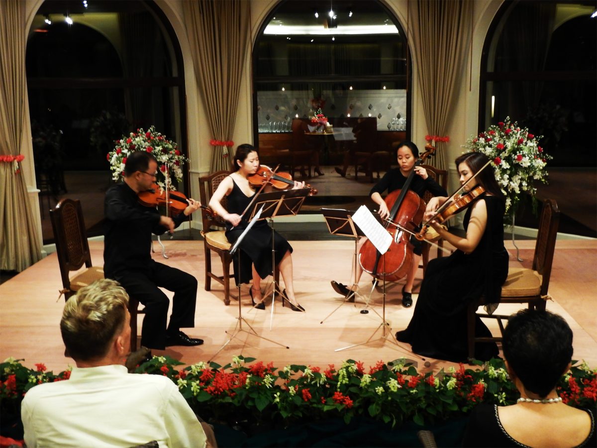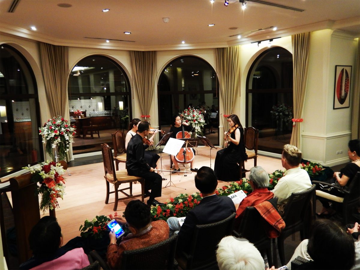 Lovers of classical music were treated to a very special evening this past Saturday when the Pro Musica string quartet performed ‘Requiem Without Words’, a Mozart requiem, in loving memory of its founder, Admiral ML Usni Pramoj. In 1958, Pro Musica was formed by ML Usni who soon grew it into a small chamber orchestra. As founder, violinist in the quartet, concertmaster of the orchestra, occasional conductor and general manager, ML Usni, with support from the Goethe Institute, turned his quartet into Thailand’s first non-government professional orchestra with the aim of promoting classical music in Thailand. In 1975 the orchestra morphed into the Bangkok Symphony Orchestra though recently Pro Musica was revived to fill the need for a small and more mobile chamber orchestra. ML Usni passed away last year and this special night was a requiem in his honour. Guests were taken to a private villa on the Four Season’s lush grounds, treated to a red carpet treatment which included wines and canapés, before settling in to enjoy a truly magical performance. ML Usni’s widow Thanpuying Varaporn attended the requiem and it is hoped that this annual event will continue in his honour for many years to come. All proceeds from the event will go to Thai Red Cross Society, Chiang Mai Chapter.
