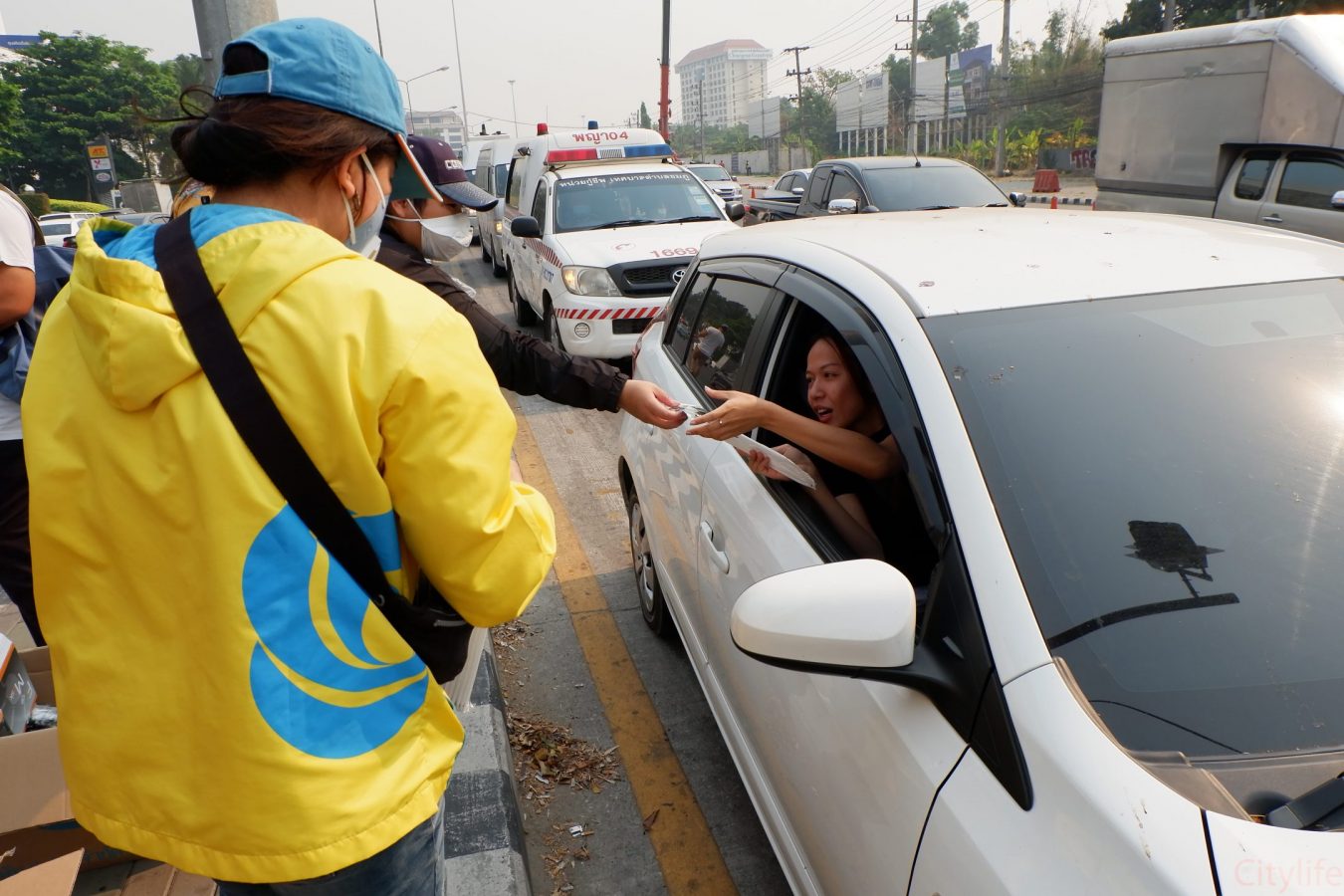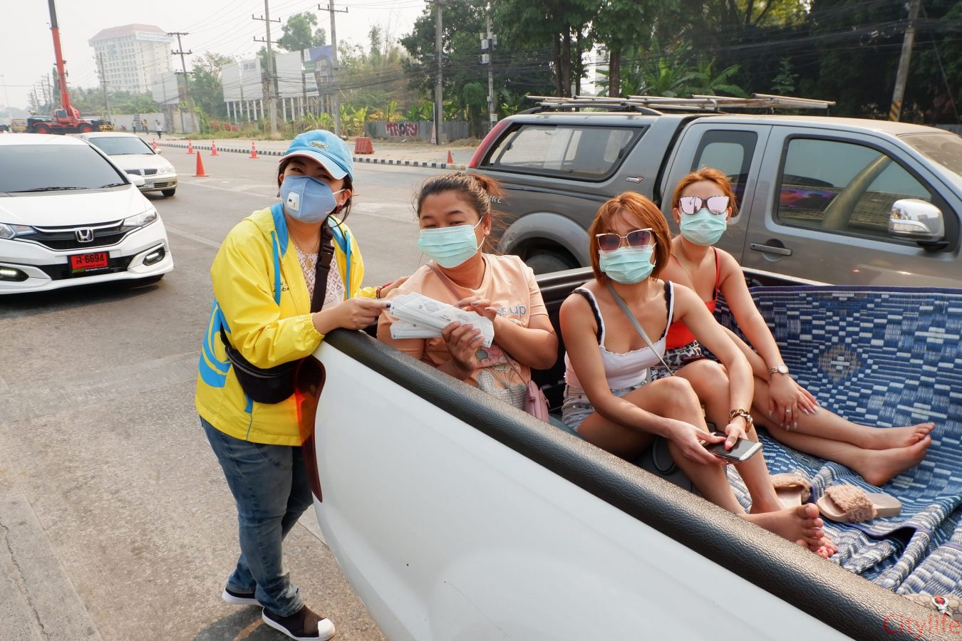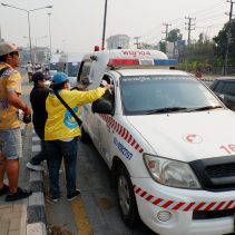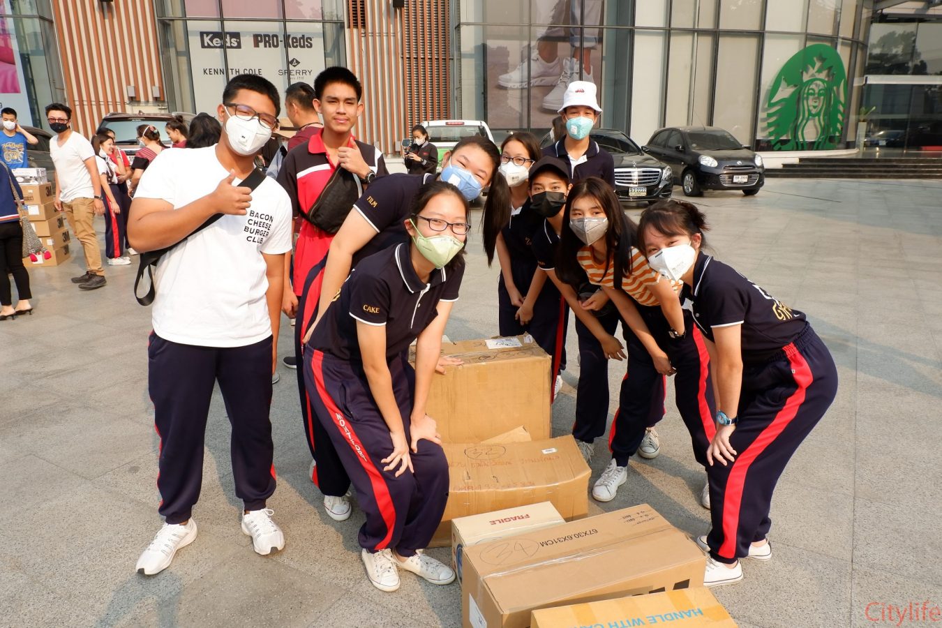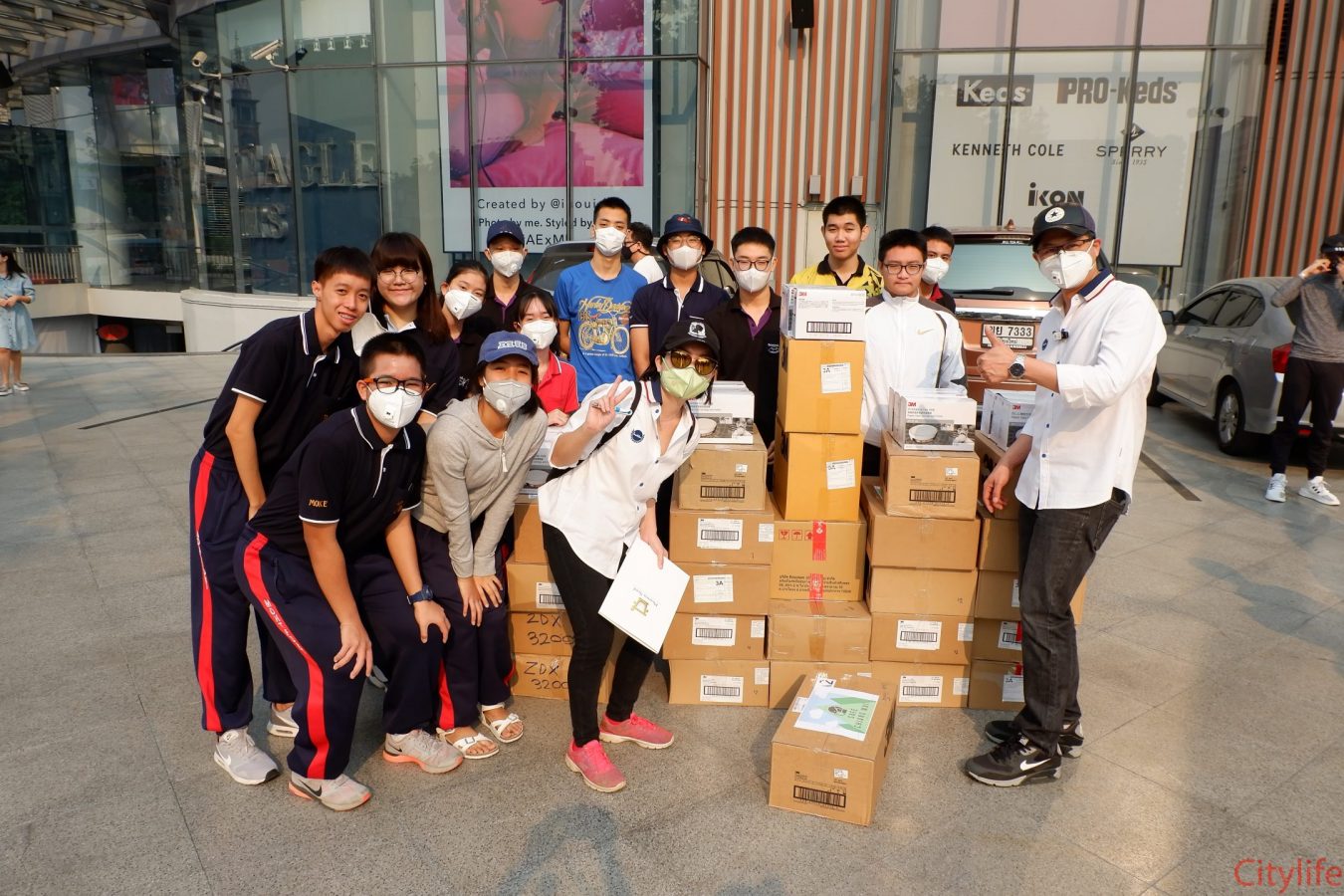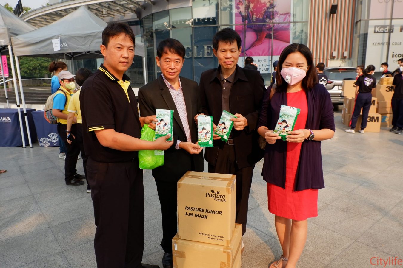 Safe Chiang Mai Group met at Maya Lifestyle Shopping Center to coordinate distributing over 60,000 face masks around Chiang Mai Province and Mae Hon Song to combat the effects of pollution. The group also handed out masks to people around the Rincome Intersection.