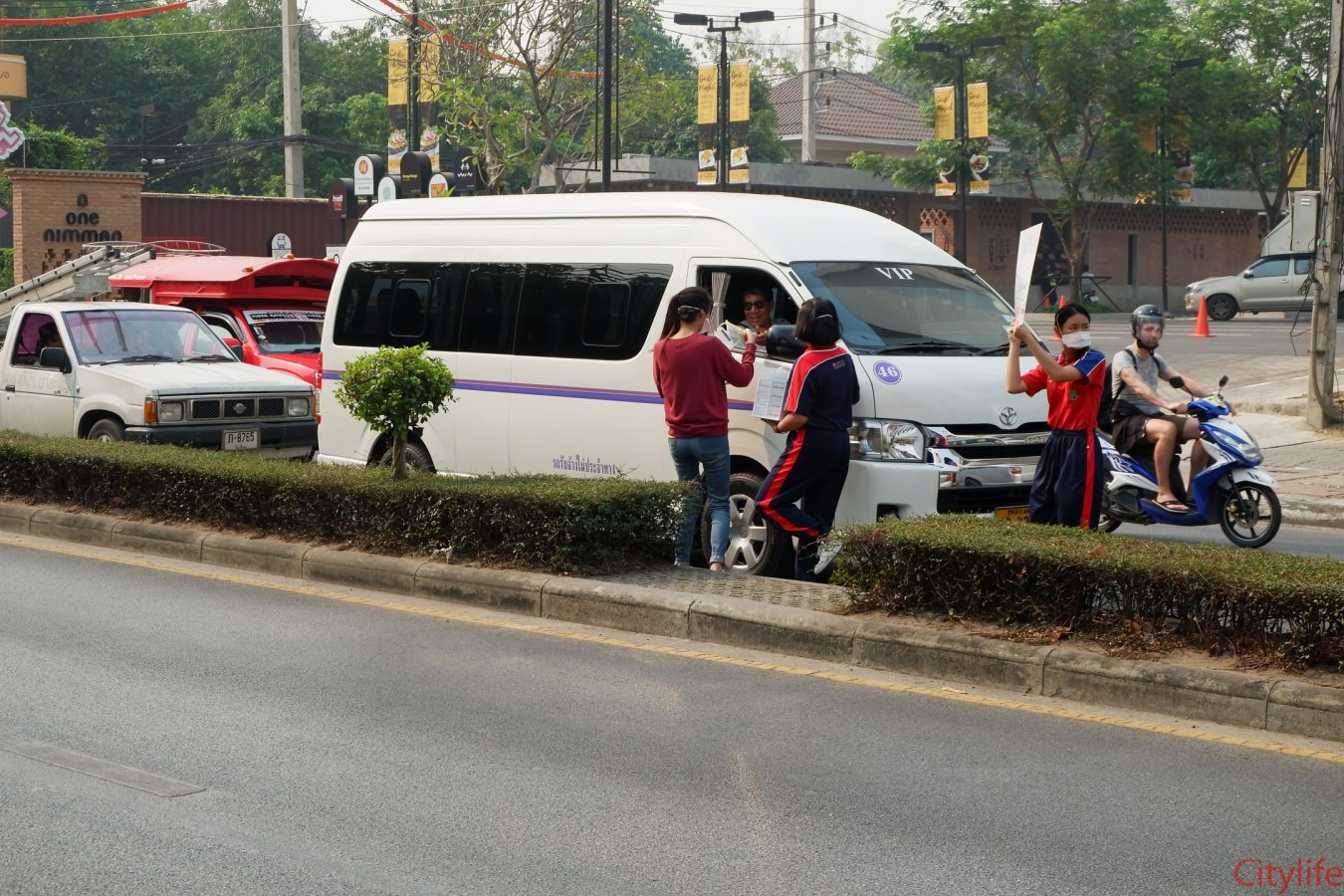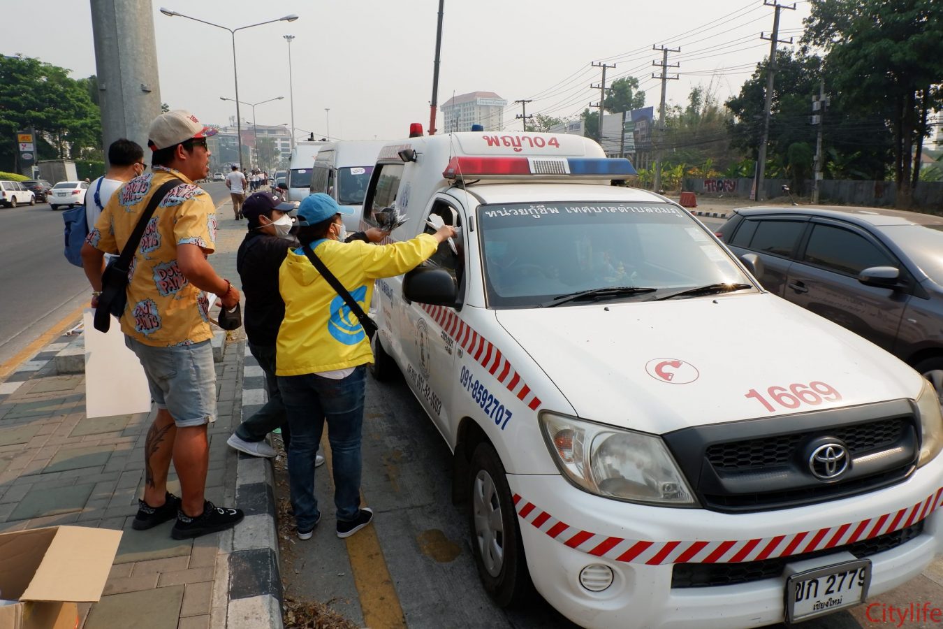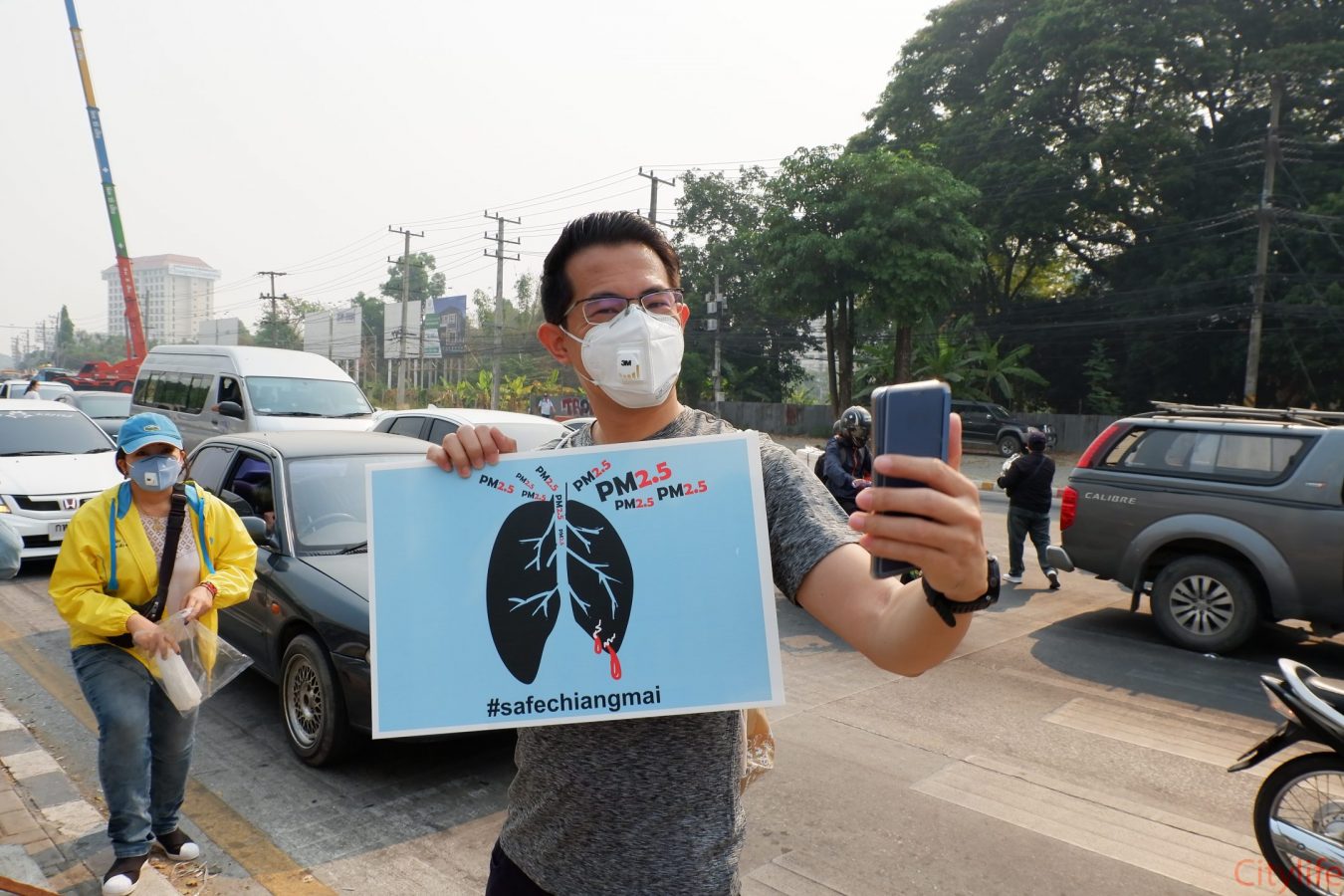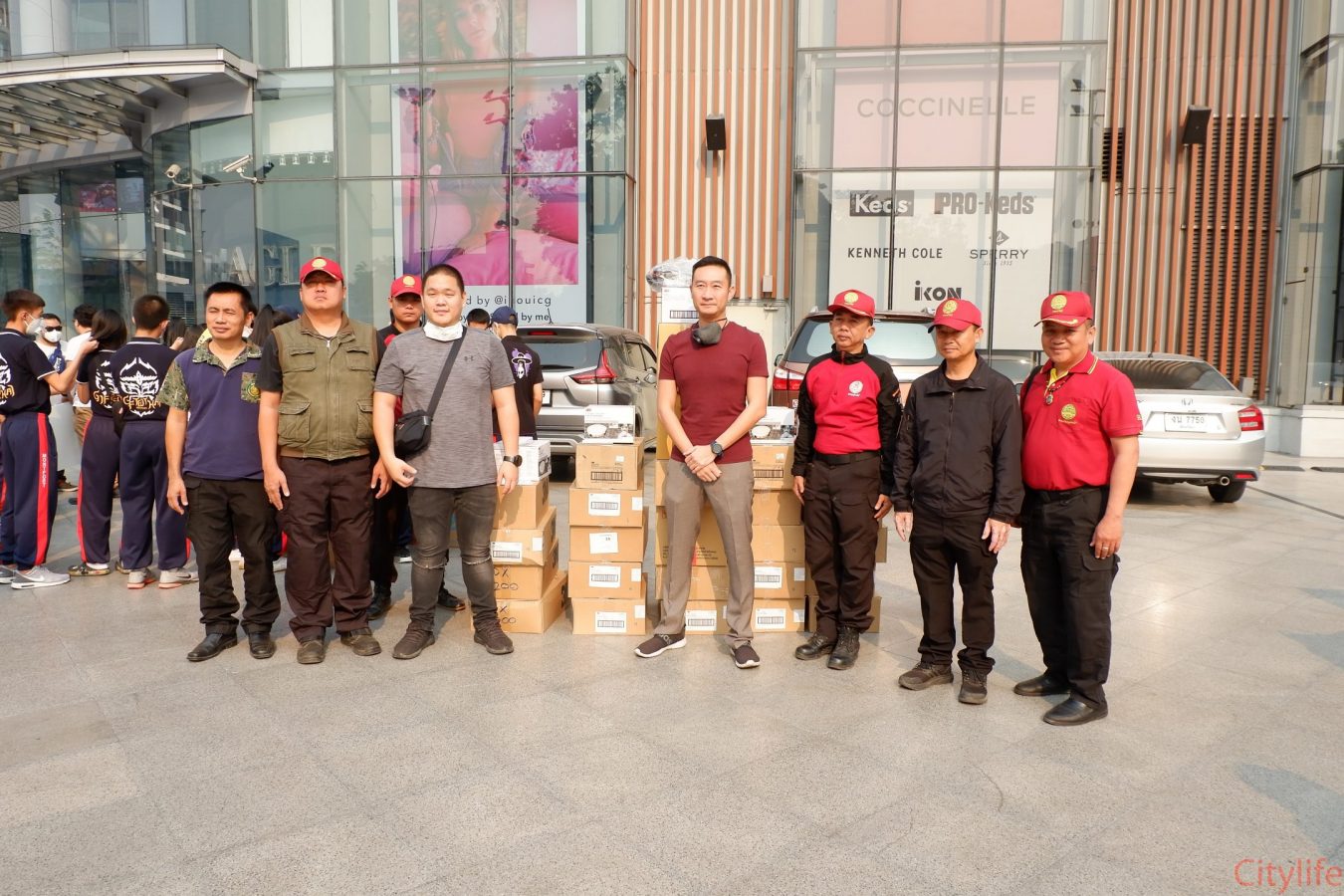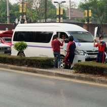 Safe Chiang Mai Group met at Maya Lifestyle Shopping Center to coordinate distributing over 60,000 face masks around Chiang Mai Province and Mae Hon Song to combat the effects of pollution. The group also handed out masks to people around the Rincome Intersection.