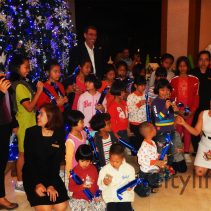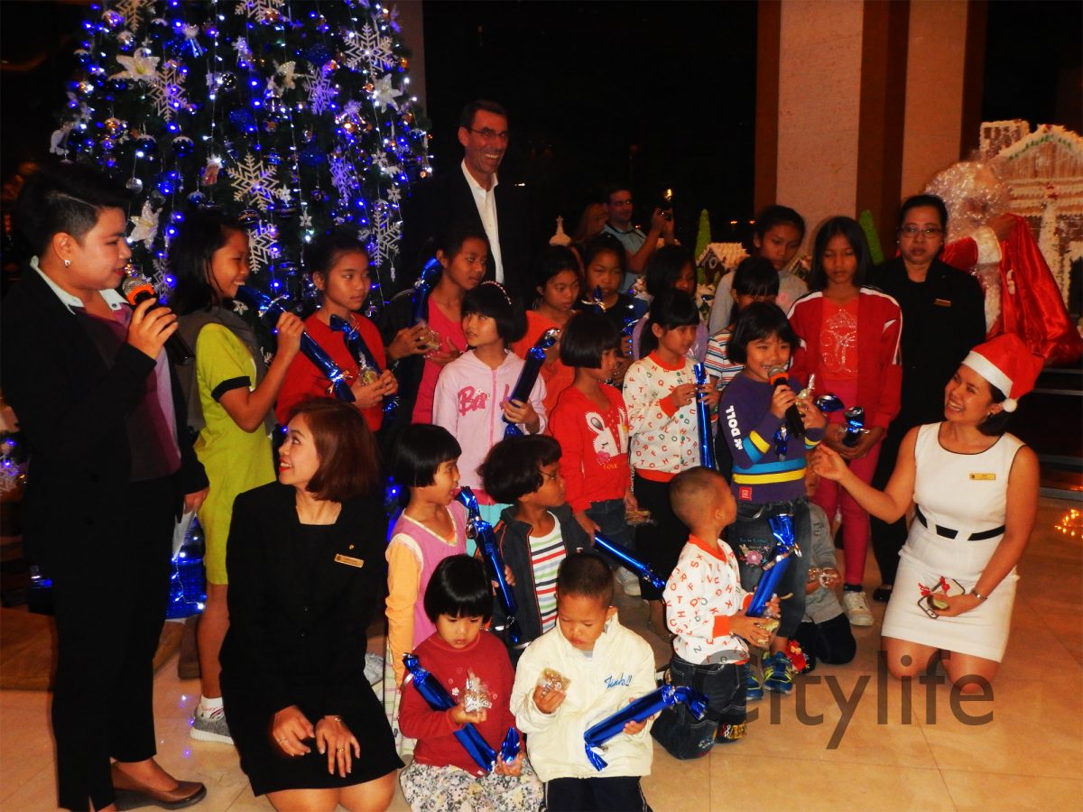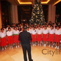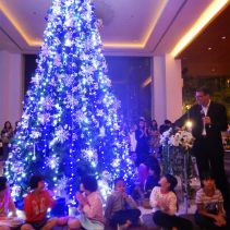 Lighting of the Christmas Tree in the lobby of the Shangri La Hotel. The General Manager Franz Richter told guests and local media; this Christmas the hotel is supporting Viengping Children’s Home under it’s EMBRACE project, as well as the Lampang Elephant Hospital in partnership with the Elephant Parade.