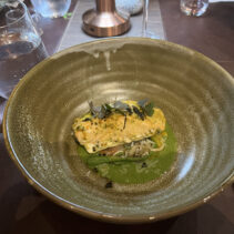 Pre-main: Aquaria Steamed Marinated Tumeric Garlic Salmon with Veggie Spaghetti and Spicy Acacia Pesto (Tea: Longlal – Oolong tea)