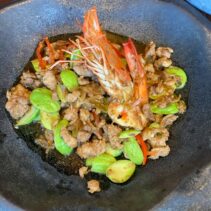 Guests were able to enjoy 9 unique dishes- BBQ Pork Roll / Golek Chicken / Raw Fish & Pineapple / Dried and Fresh Shrimp Chili Paste / Shino Portuguese style Pork Belly / Stir-fried Bitter Bean with Shrimp / Snow Fish in spicy and sour curry / Crab Curry / Oh- Oew Coconut Dessert — each one crafted with a distinct twist and full of character, brought to life by Chef Phubase’s creativity and expertise.