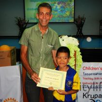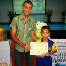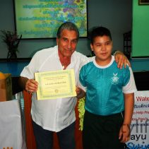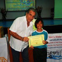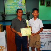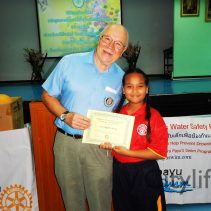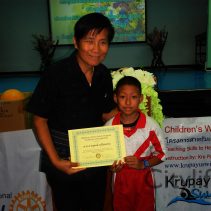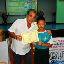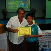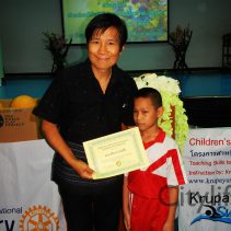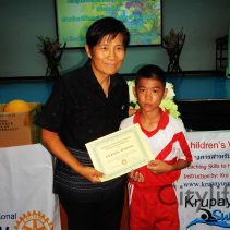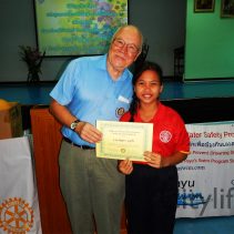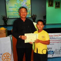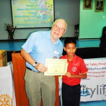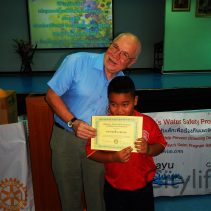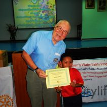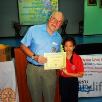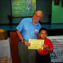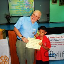 Celebration and certificate presentation ceremony today at for 180 children who successfully completed the Chiang Mai International Rotary Club-Kru Payu Swim Children’s Water Safety and Drowning Prevention Program. Special recognition was given to the Chiang Mai Expats Club for sponsoring two of the eleven public schools in the program. Again, this coming year every 4th-grader in the eleven public schools will attend 15 hours of survival swimming instruction sponsored by the Chiang Mai International Rotary Club and other generous local donors, contact [email protected] for more information.