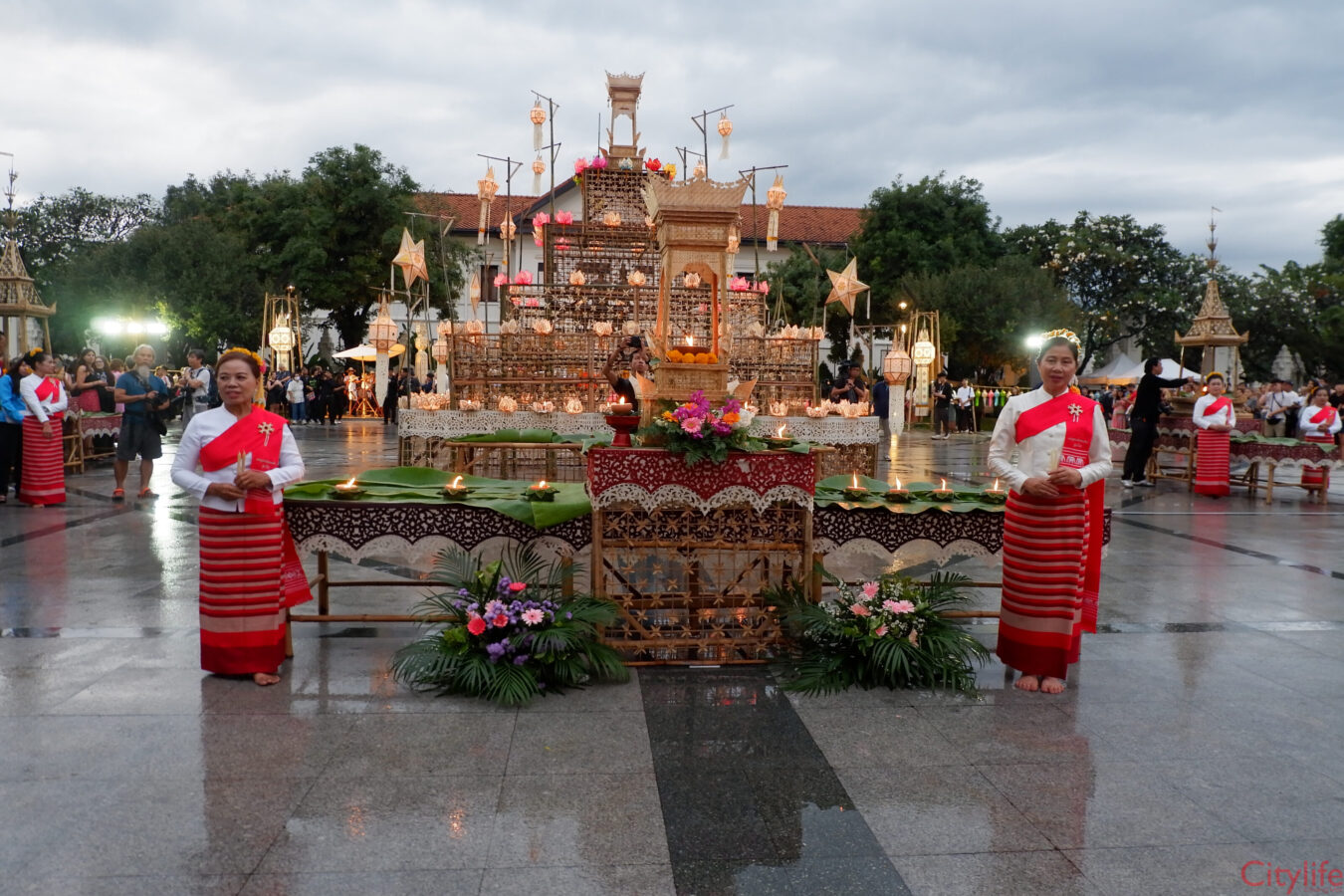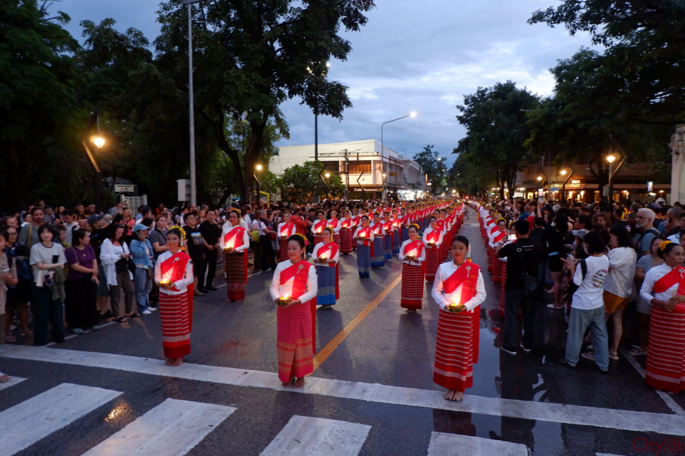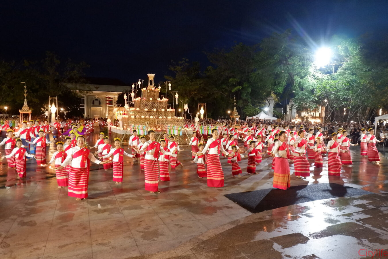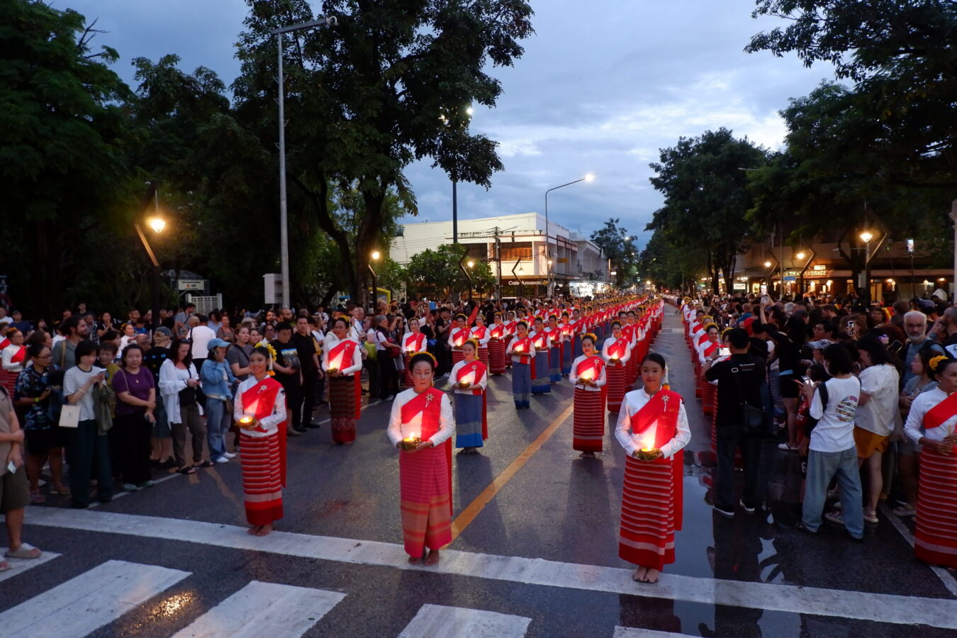 “Tam Phang Prathip Song Fa Haksa Mueang” (Lantern Lighting for City Blessings) – 14th Edition at Three Kings Monument & Chiang Mai’s four City Gates. Lighting of tens of thousands of clay lanterns around the moat, plus the opening ceremony and a procession of over 500 dancers starting from Tha Pae Gate and walking along Ratchadamnoen Road to Phra Pokklao Road, ending at the Three Kings Monument. Paying homage to the founders of the Lanna Kingdom plus this year; The Stream of Royal Grace “Paying Tribute to Her Majesty Queen Sirikit, The Queen Mother: Eternal in Our Hearts”