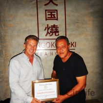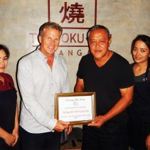 Jonky Dawson presented Sun Suebsaeng owner of Tengoku de Cuisine with the Chiang Mai Eats Group ‘members favourite Japanese Restaurant 2017’. Tengoku has two branches TAZALA; Buak Khrok Luang Soi 2 (in front of the entrance to the Dhara Dhevi) for reservations 053-850-111 or 053-851-1333 // TENGOKU YAKI; Nimmanhaemindha Road Soi 5 for reservations 053-215-801 or 087-725-9888