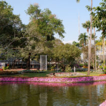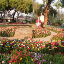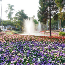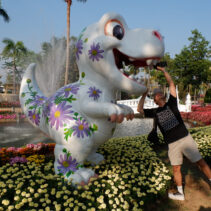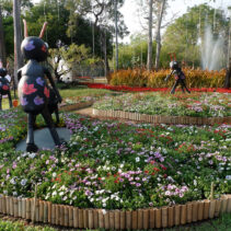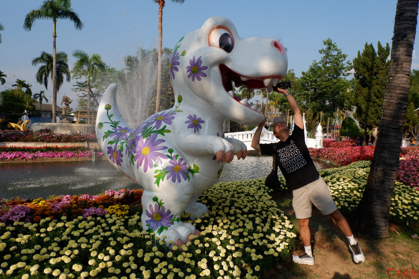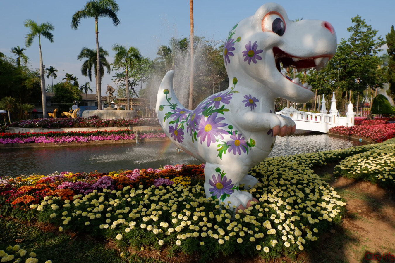 A family-friendly garden filled with colorful flowers, photo spots, dinosaur models, and 12 sculptures.