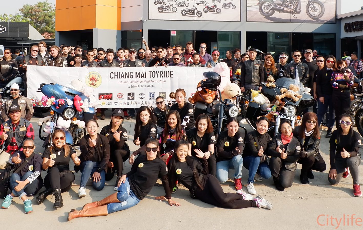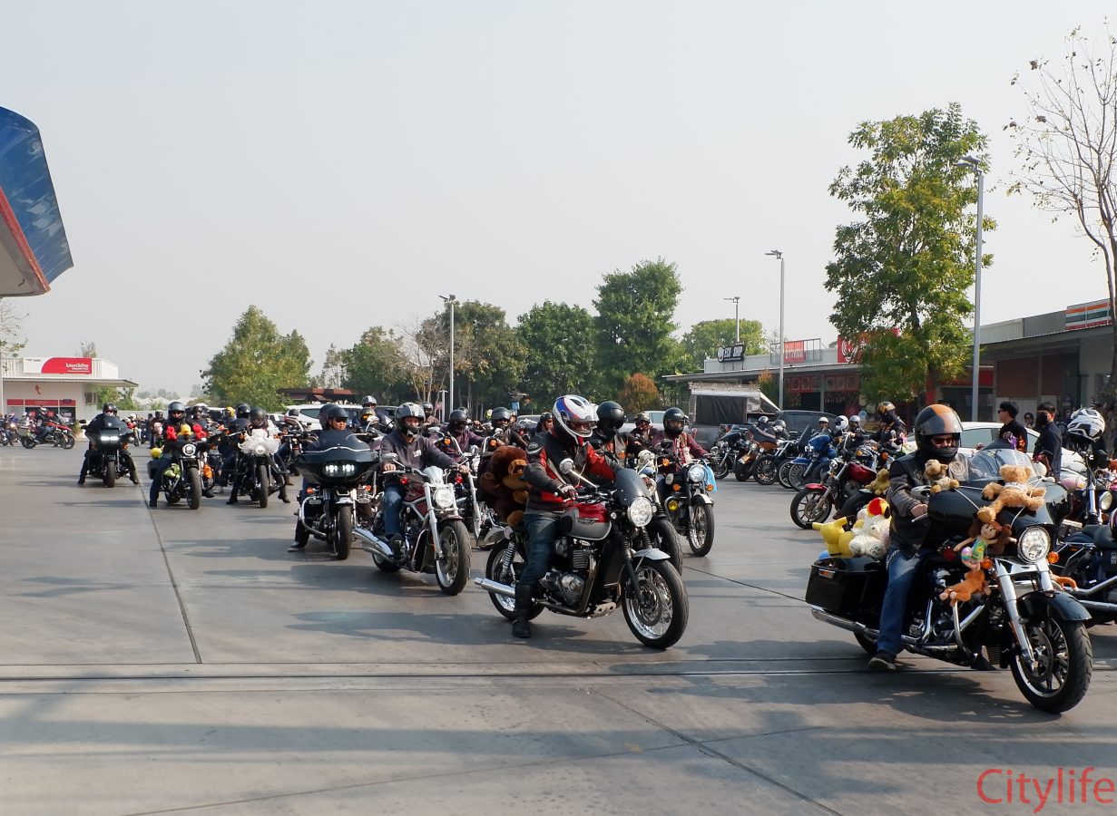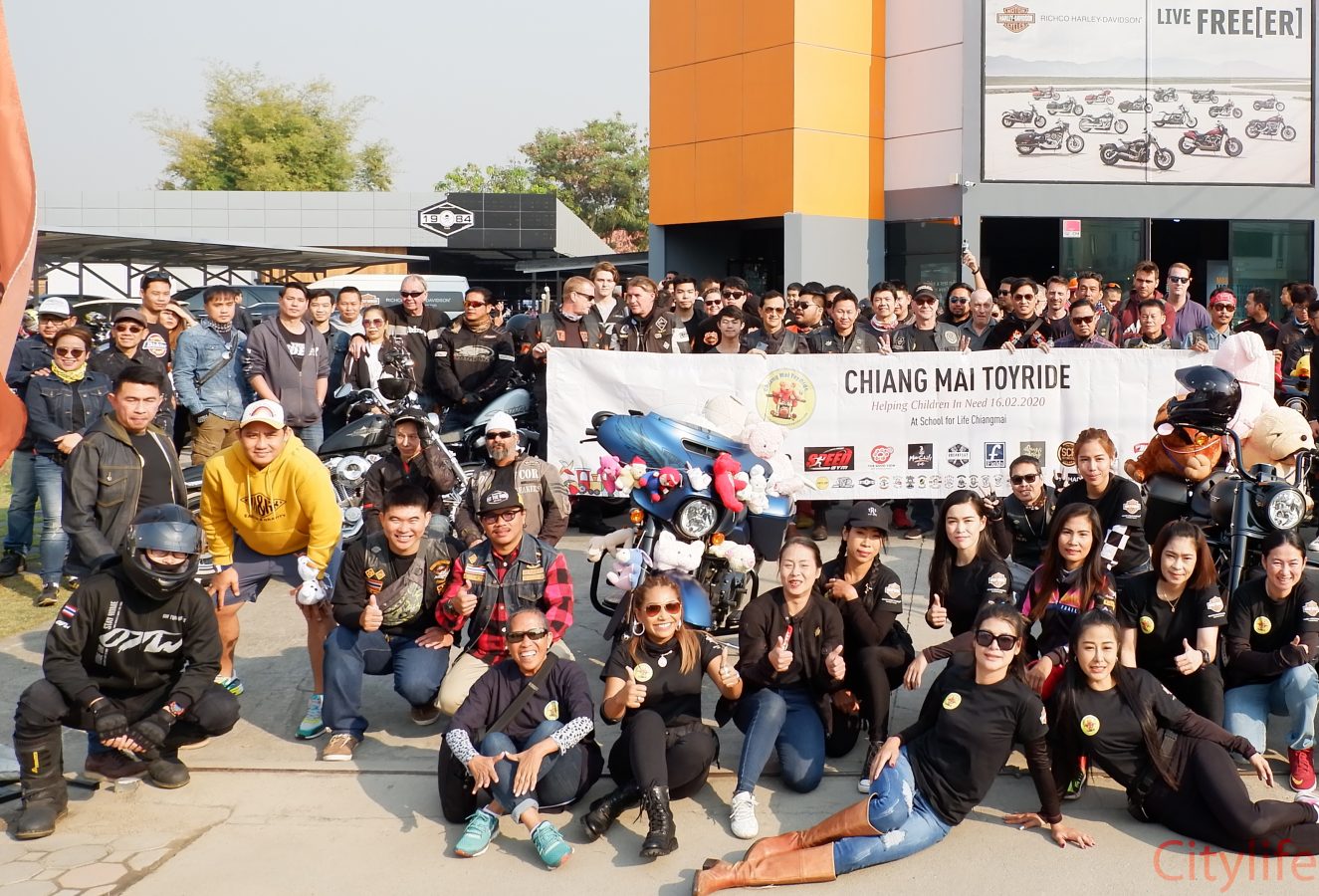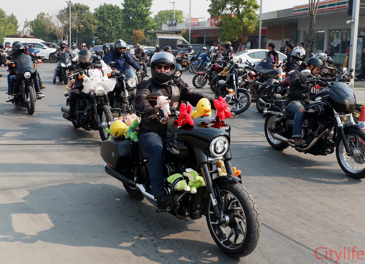 The Annual Chiang Mai Toyride 2020. Motorbikes of all sizes left Richco Harley Davidson with stuffed animals and cuddly toys strapped to their bikes for a tour round Chiang Mai before going to School for Life in Doi Saket. The bikers organized a fun afternoon for the kids with clowns, mini games, lunch with ice cream plus donated sports equipment and handed out all the cuddly toys to the children in need.