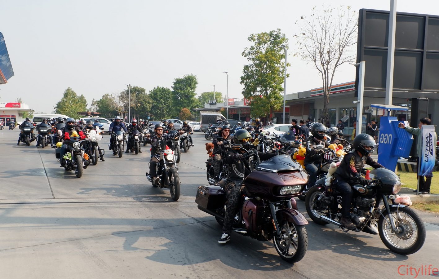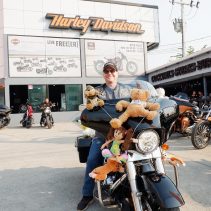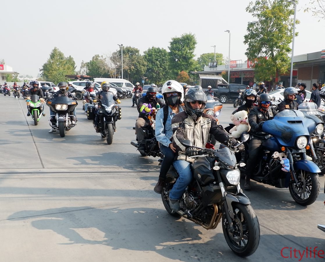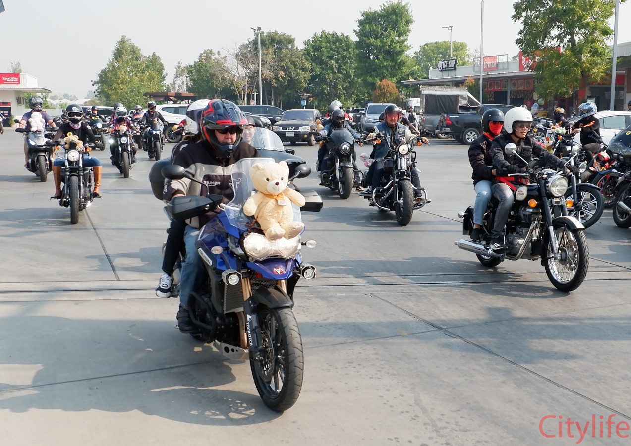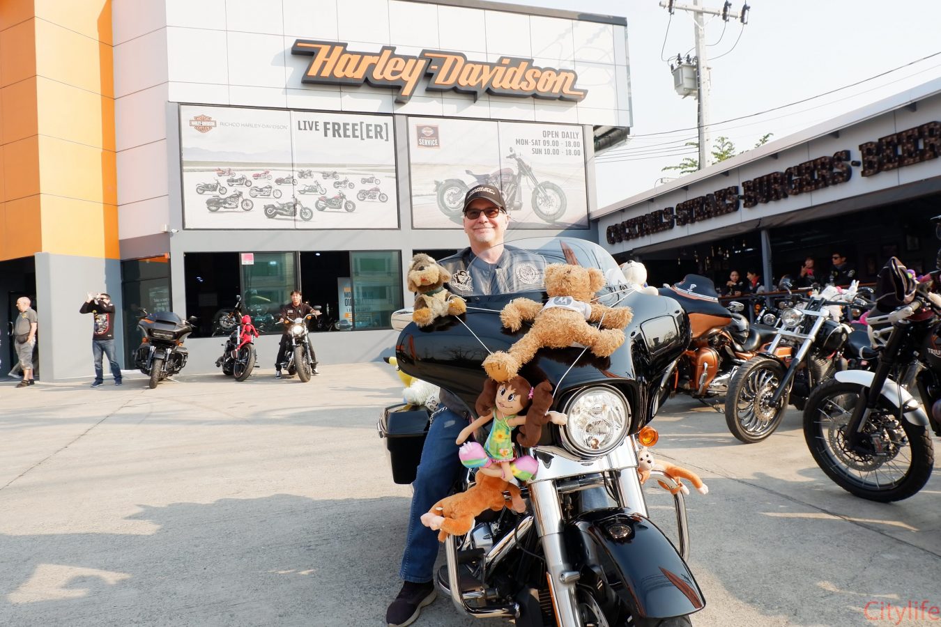 The Annual Chiang Mai Toyride 2020. Motorbikes of all sizes left Richco Harley Davidson with stuffed animals and cuddly toys strapped to their bikes for a tour round Chiang Mai before going to School for Life in Doi Saket. The bikers organized a fun afternoon for the kids with clowns, mini games, lunch with ice cream plus donated sports equipment and handed out all the cuddly toys to the children in need.