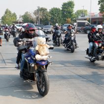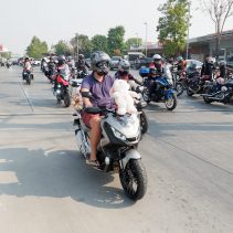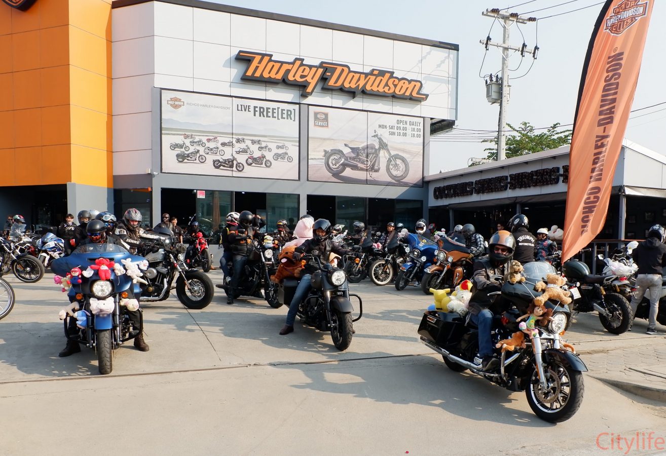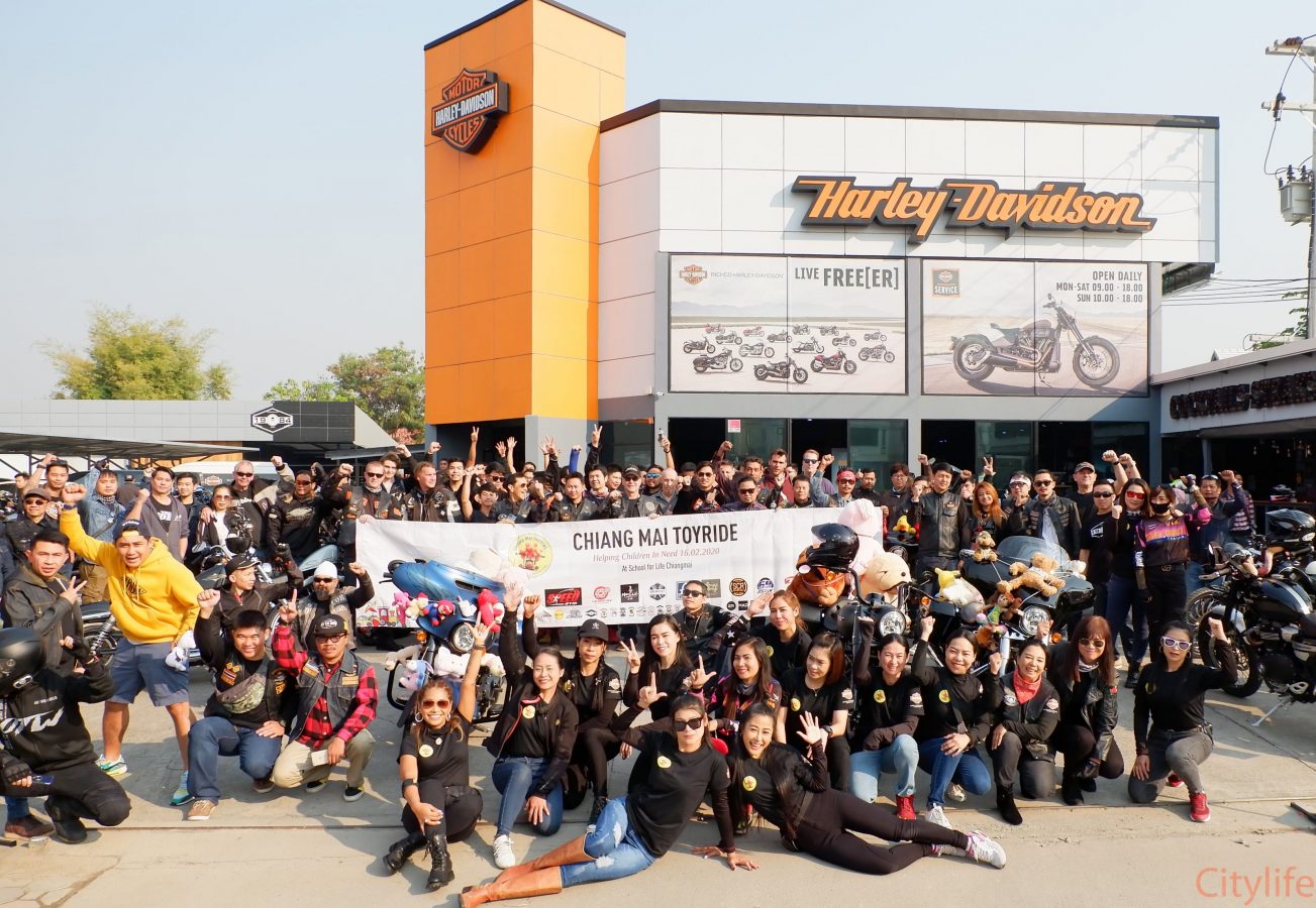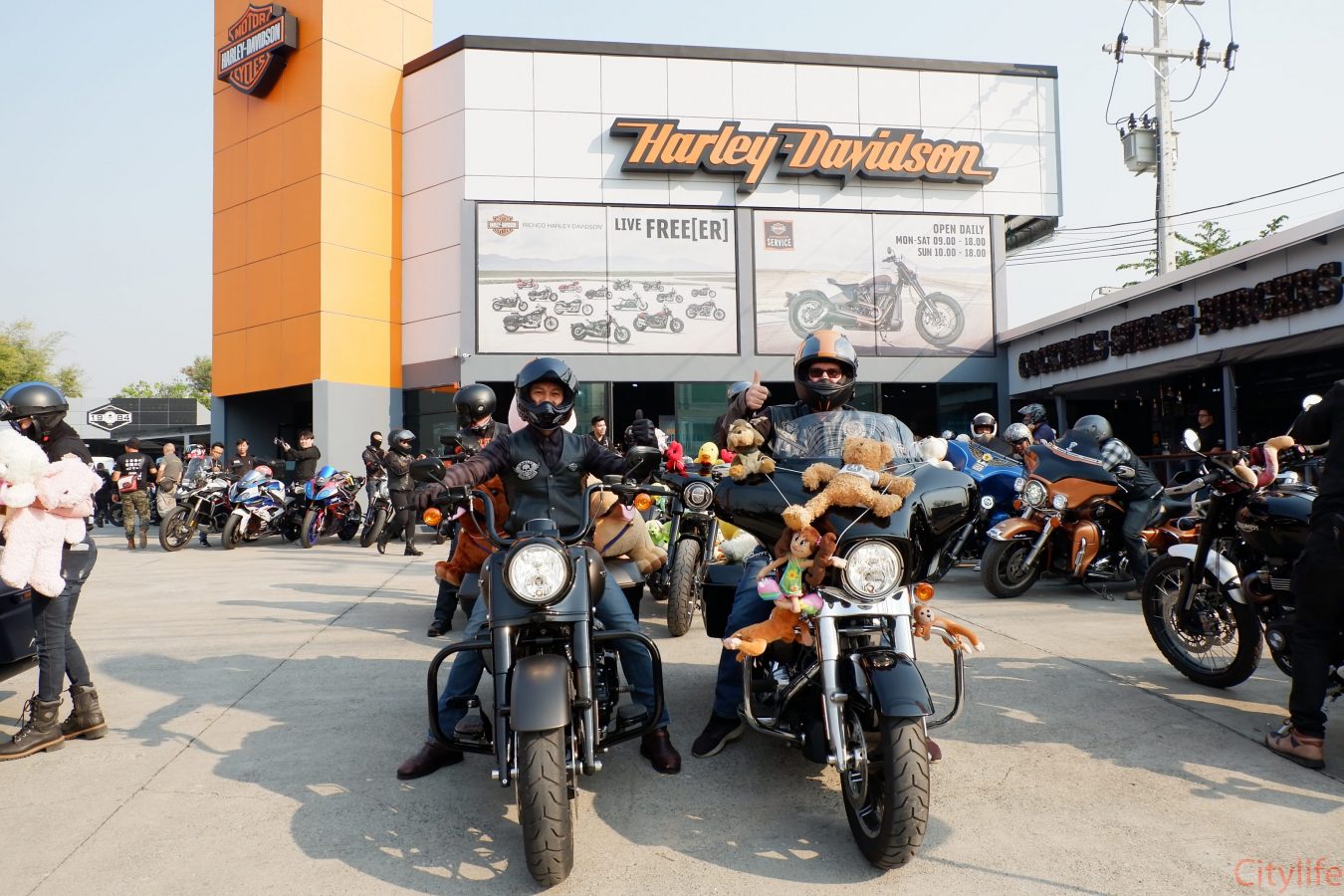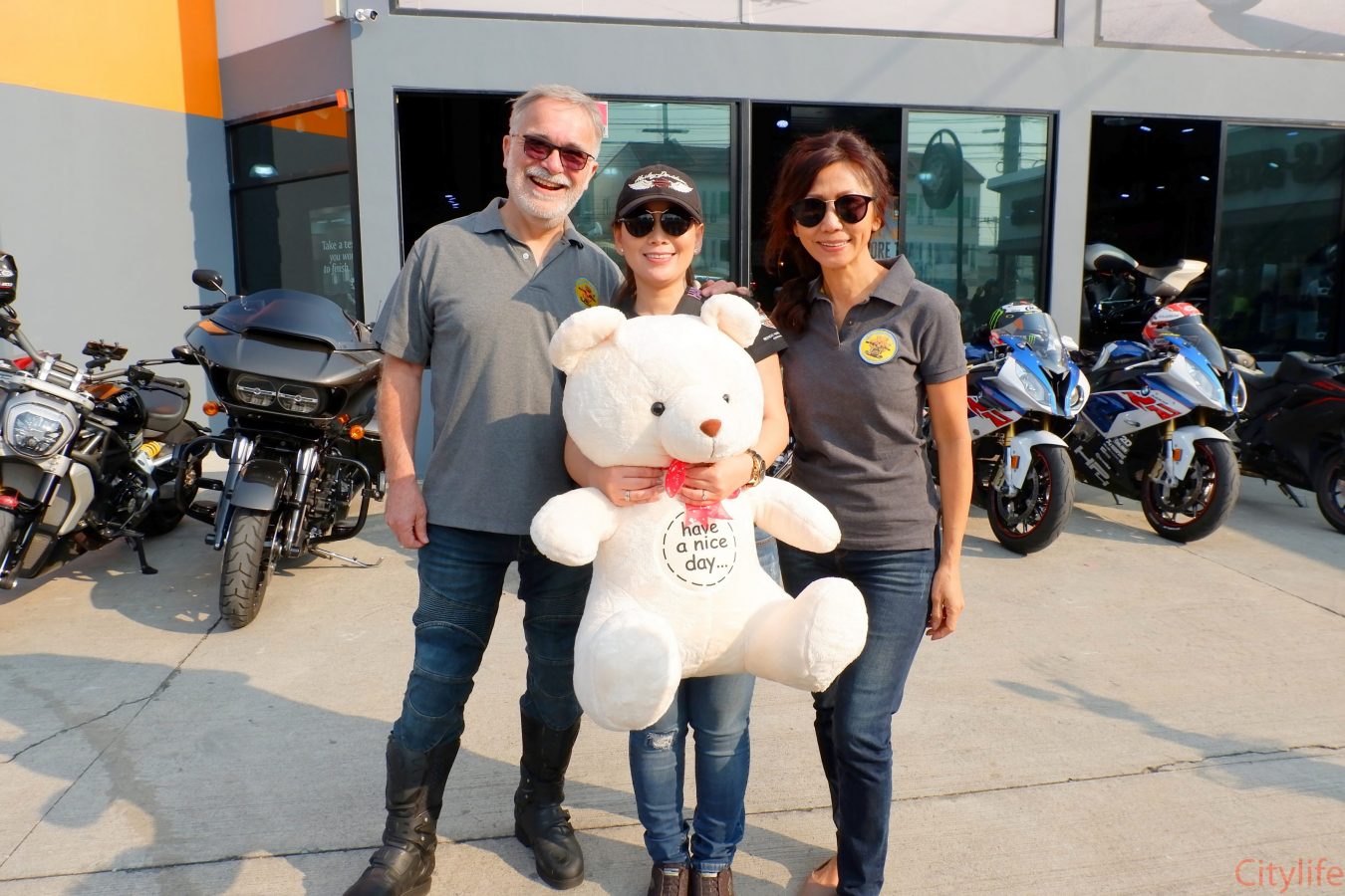 The Annual Chiang Mai Toyride 2020. Motorbikes of all sizes left Richco Harley Davidson with stuffed animals and cuddly toys strapped to their bikes for a tour round Chiang Mai before going to School for Life in Doi Saket. The bikers organized a fun afternoon for the kids with clowns, mini games, lunch with ice cream plus donated sports equipment and handed out all the cuddly toys to the children in need.