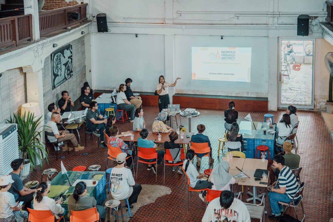 On March 18, 2026, the Nomad Friendly District (NFD) working group hosted a public forum, “The Future of San Pa Khoi–Wat Ket and Opportunities from Digital Nomads,” at Cult Caffeine (CC) on Charoen Muang Road, Chiang Mai. The event brought together over 50 local entrepreneurs and community members.