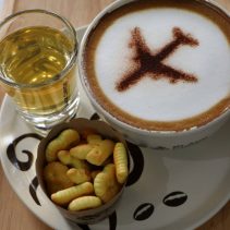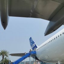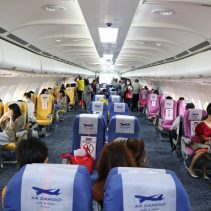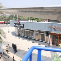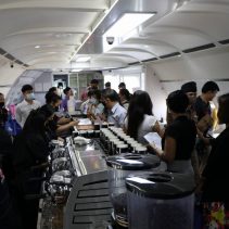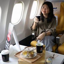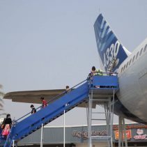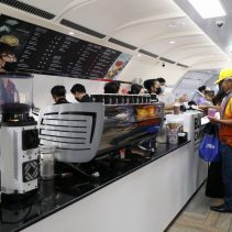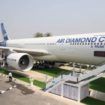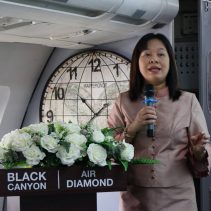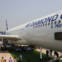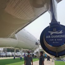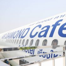The Grand Opening of Air Diamond Café & Hotel. This will be a new landmark of Mae Taeng district. An Airbus A330-300 is parked and customers have coffee and snacks in the café by Black Canyon.