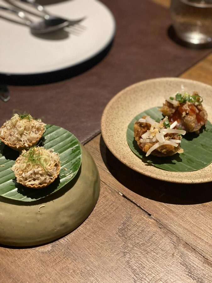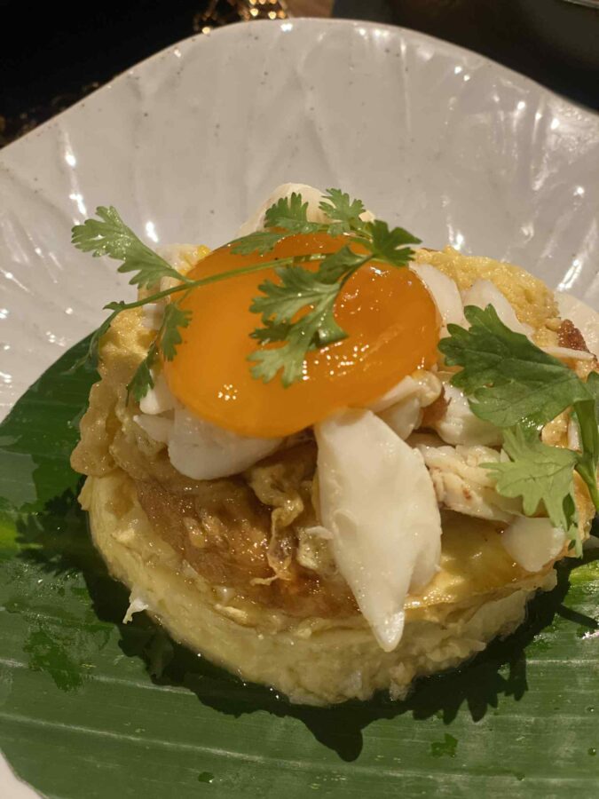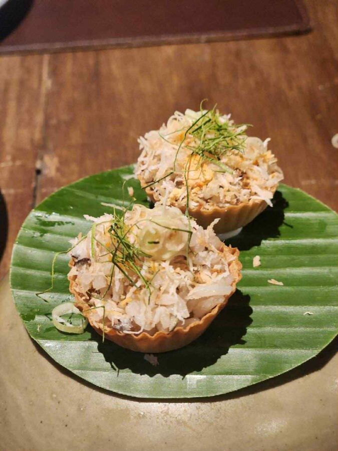 Tum Roy Dinner by Chef Phubase at Spice Garden. Experience the true taste of Southern Cuisine with uniquely styled and flavorful dishes, crafted through the skills and expertise of Chef Phubase, who will bring a new charm to Special Thai Southern Cuisine and make it more special than ever. Prawn Crudo and fish sauce granita / mackerel rice salad tart / O-Tao oyster / Tamarind Chili Dip / fish & sour soup / crab cake omelette /BBQ rib spicy curry / grilled squid stir fried with shrimp paste / banana cheese cake with palmyra palm sugar caramel ice cream.