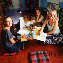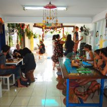 Open House at Free Bird Cafe for the Unveiling of Nick Reale’s map of Free Bird Cafe to show the cafe and workspace.