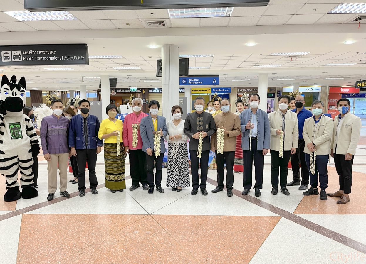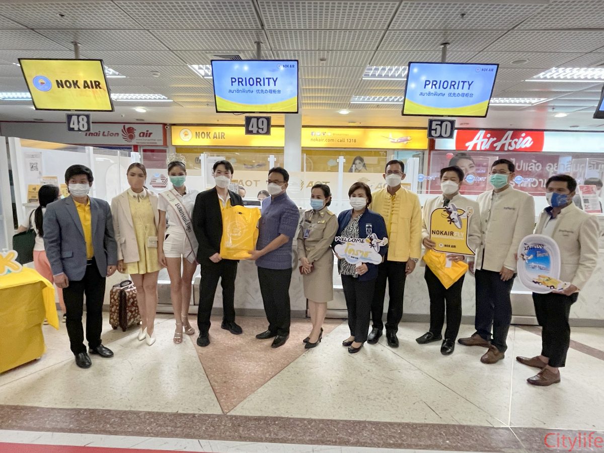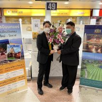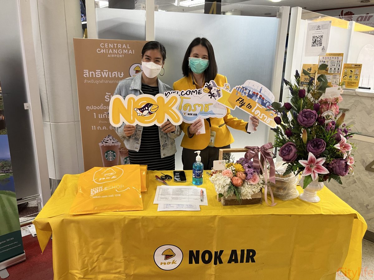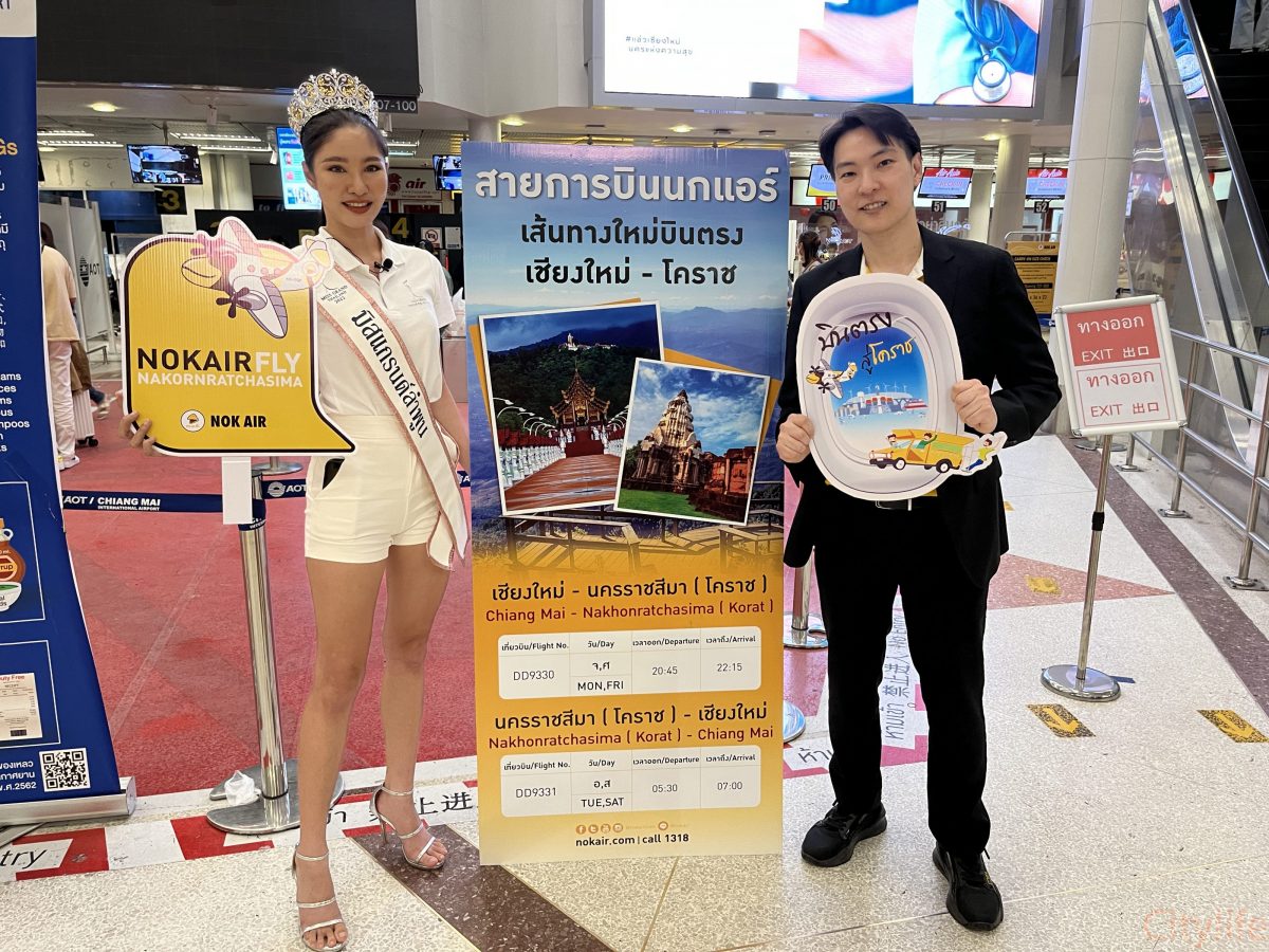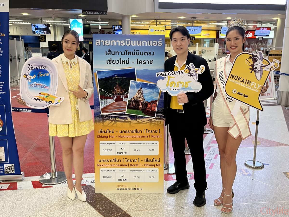 Following a Water Salute for NokAir Inaugural Flight Nakorn Ratchasima to Chiang Mai, the Deputy Governor of Chiang Mai, Vorayan Bunarat welcomed passengers from the flight DD751 at Chiang Mai Airport. The previous evening distinguished guests took the reverse flight Chiang Mai (CNX) and Nakorn Ratchasima (NAK).