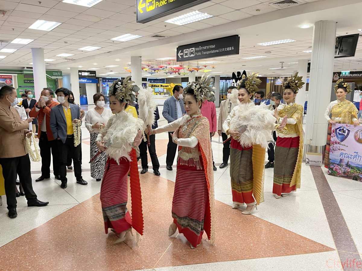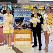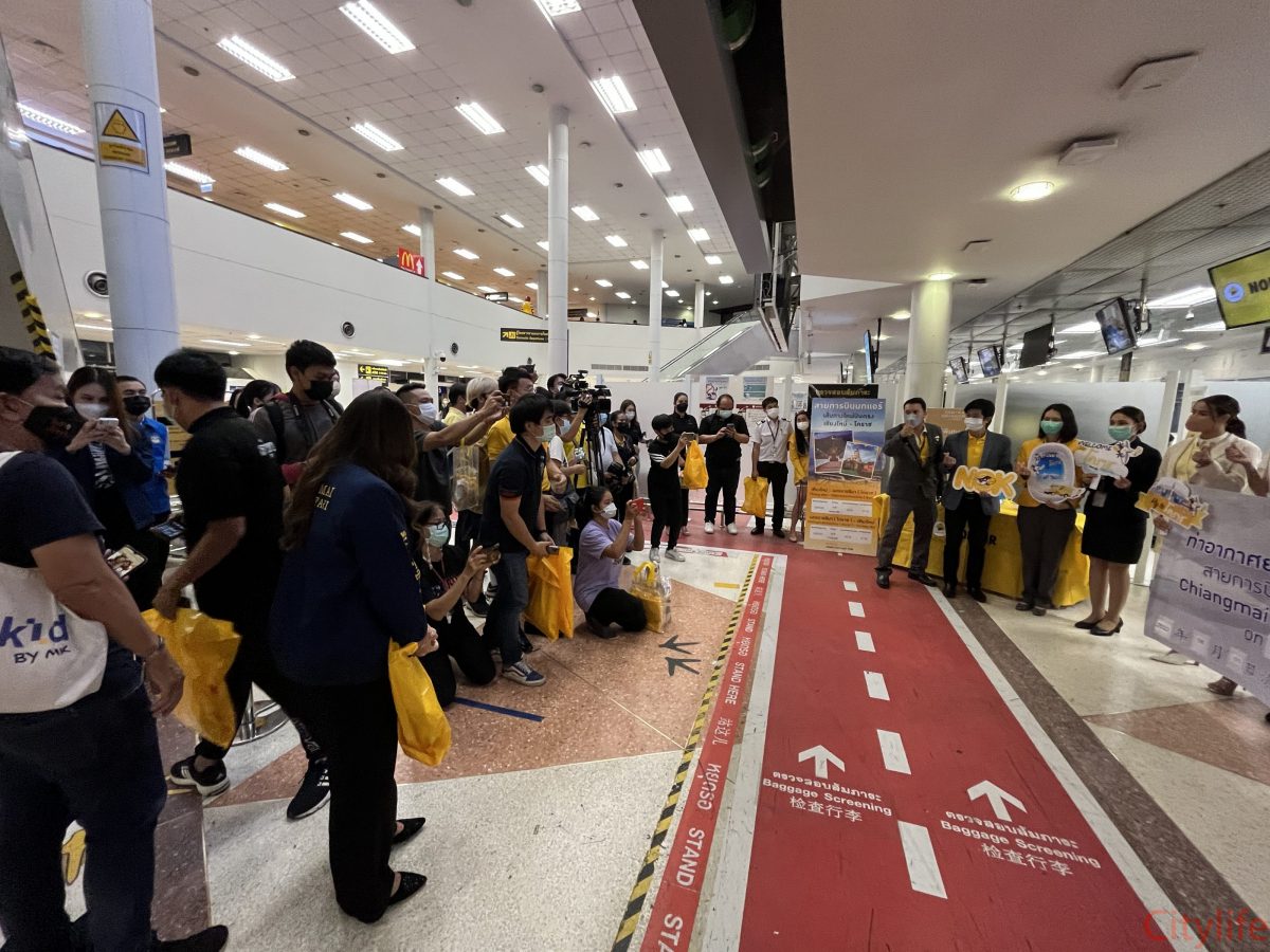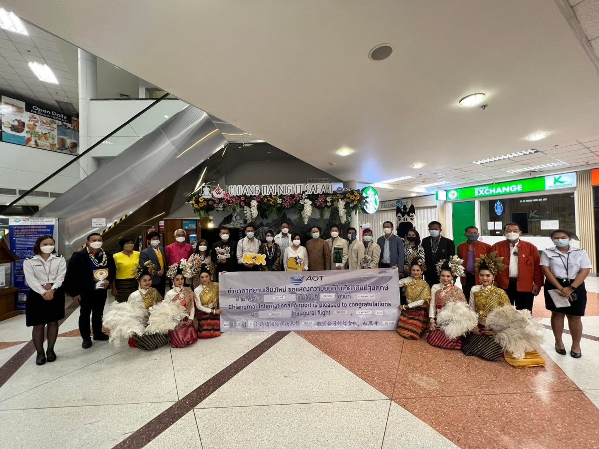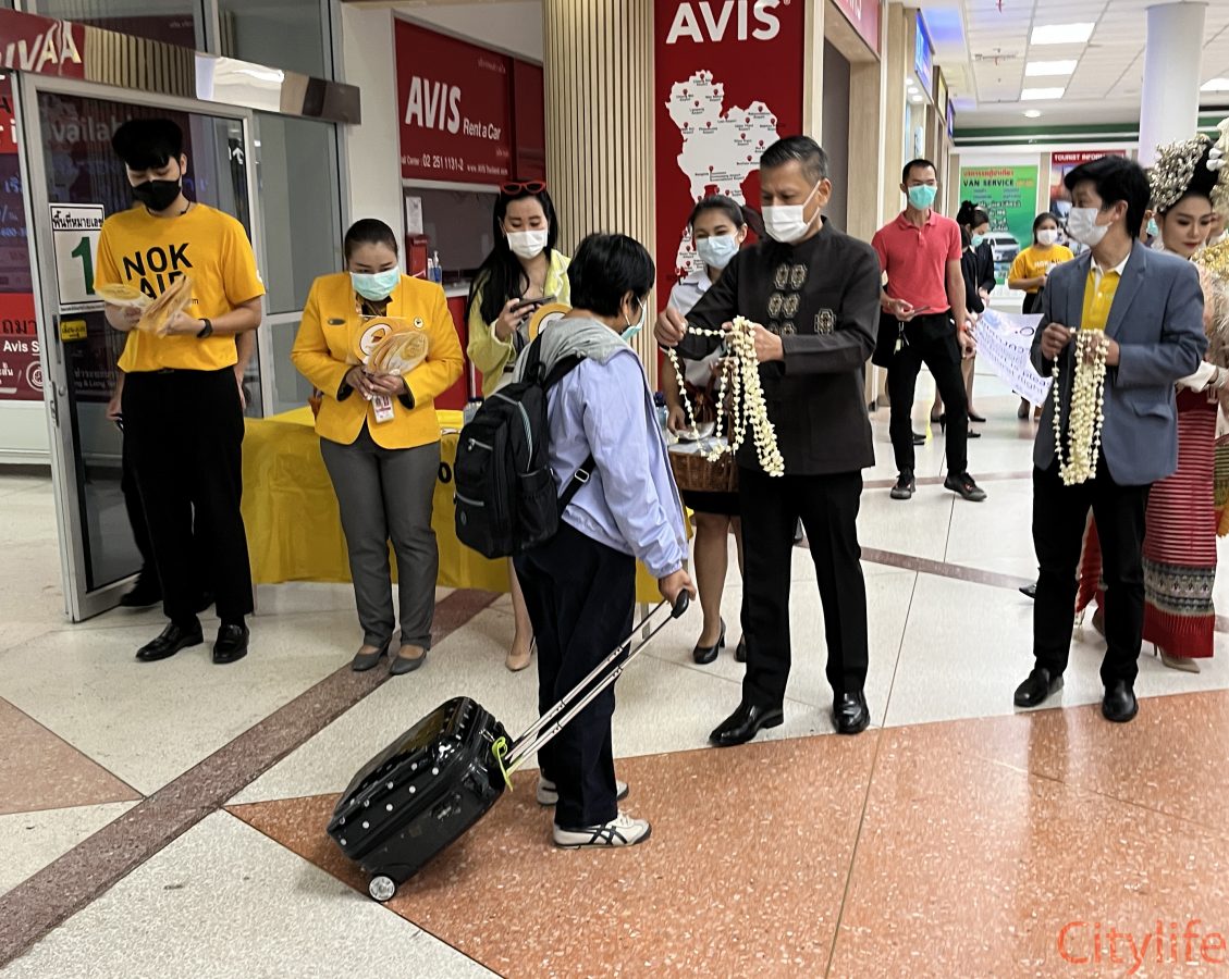 Following a Water Salute for NokAir Inaugural Flight Nakorn Ratchasima to Chiang Mai, the Deputy Governor of Chiang Mai, Vorayan Bunarat welcomed passengers from the flight DD751 at Chiang Mai Airport. The previous evening distinguished guests took the reverse flight Chiang Mai (CNX) and Nakorn Ratchasima (NAK).